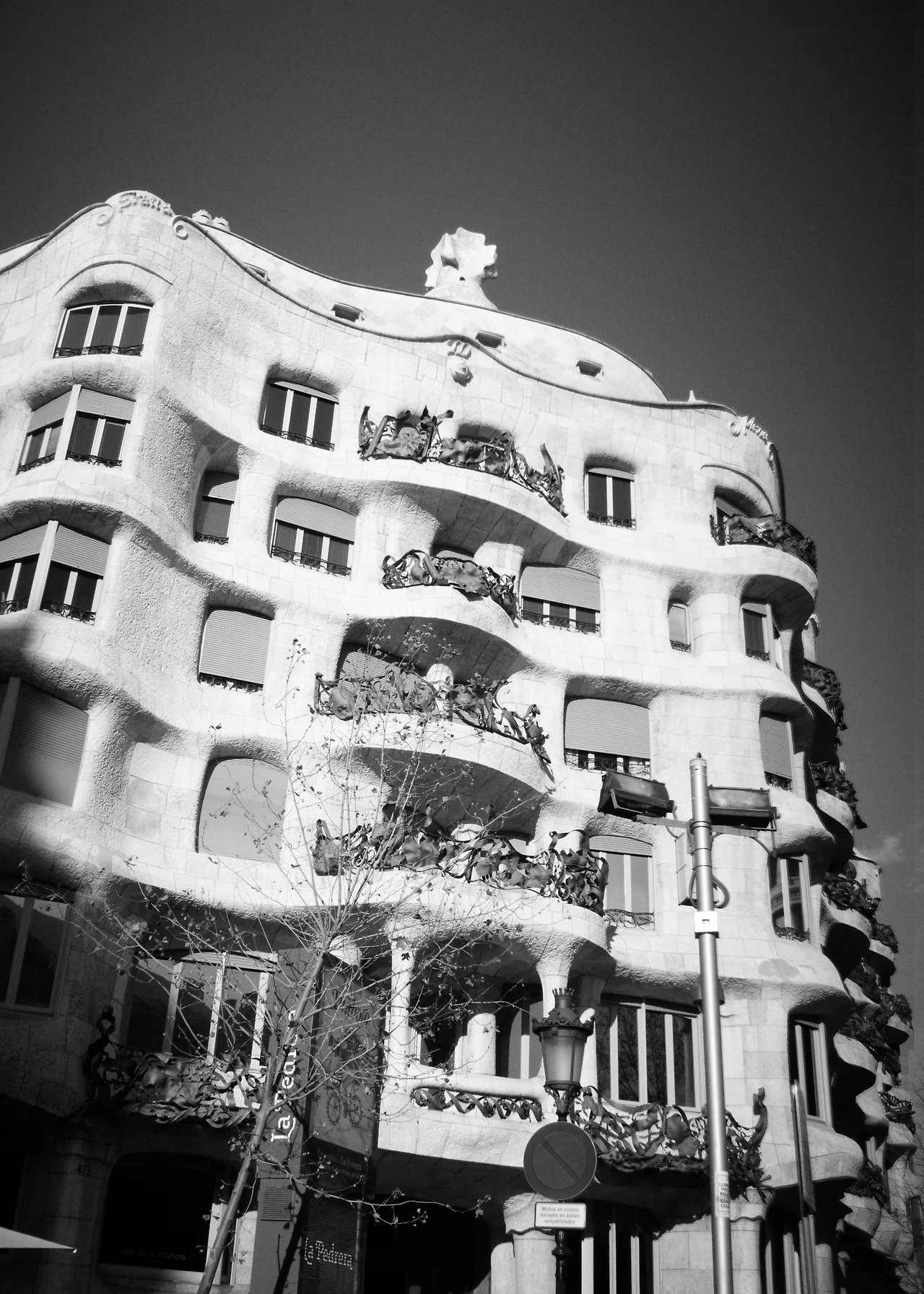 밀라와 그의 부인 도냐 로사리오는 자신들의 집을 가우디에게 맡겼다. 정형화된 설계도가 없이 넓은 책상 한가운데 구멍을 내고 그 안에 들어가 도면을 그리는 건축가를 지켜보며 무슨 생각을 했을까? 그는 몬세라트 산의 암벽을 이곳으로 옮겨온다. 파도치듯 일렁이는 외벽의 곡선들은 바르셀로나의 강렬한 햇살에 부딪혀 눈부시게 빛나고 베란다에 자리한 섬세한 조각들은 그라시아 거리와 프로벤사 거리가 만나는 모퉁이에서 사방을 향해 존재감을 알린다. 몬주익의 무거운 사암을 들어 올려 몇 번을 깎고 다듬어 쌓아 내고 완성한 이곳은 철골 구조에 돌을 입힌 최신 공법과 지하주차장, 중앙난방에 전기 엘리베이터까지 있는 최고급 빌라로 태어난다.