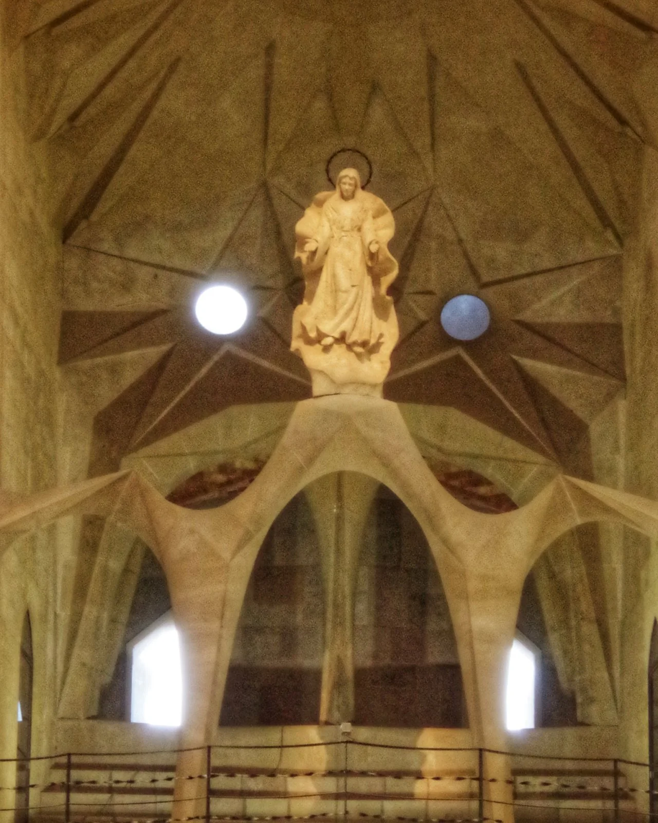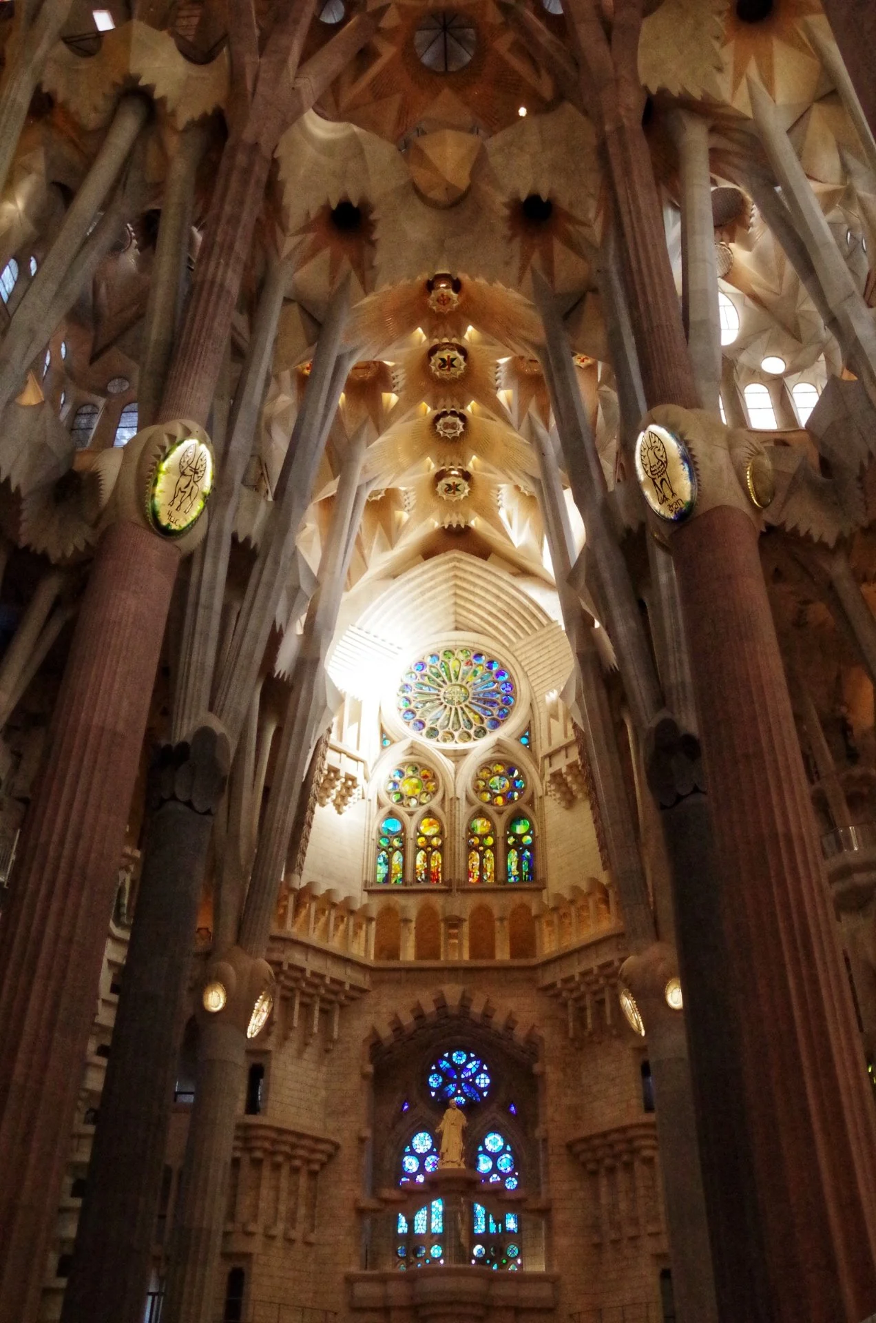 수난의 파사드 겉면 십자가에 매달린 예수상과 그 아래 베로니카의 베일 옆에는 십자가를 지고 골고다 언덕길을 오르는 예수와 그를 지켜보는 가우디 자신이 조각되어 있다. 생생한 조각들에 드리운 음영들은 시시각각 다른 표정을 만들며 보는 이의 시선을 잡아끈다. 돌로 새겨진 경전을 보고 소리 내어 읽는 기분마저 든다. 예수의 공생애가 고스란히 기록되며 그의 피가 만든 인간 구원의 역사에 대한 신심이 조각들을 통해 감동을 전한다. 글자를 모르는 이들을 위해 혼신의 힘을 다해 조각한 장식들을 통해 가족의 중요성, 사랑, 인내, 화합의 가치관들을 말하고자 했던 그의 노력이 올곧이 이어지고 있는 공간들을 올려다본다. 외부를 살피는 것만으로도 1시간이 훌쩍 지나버린다. 드디어 예배당 안으로 들어선다. 사방에서 쏟아져 내려오는 색색의 빛들이 눈이 부셔 동공이 빛과 어둠의 조화에 익숙해질 때까지 달팽이처럼 느릿하게 미끄러져 들어간다.