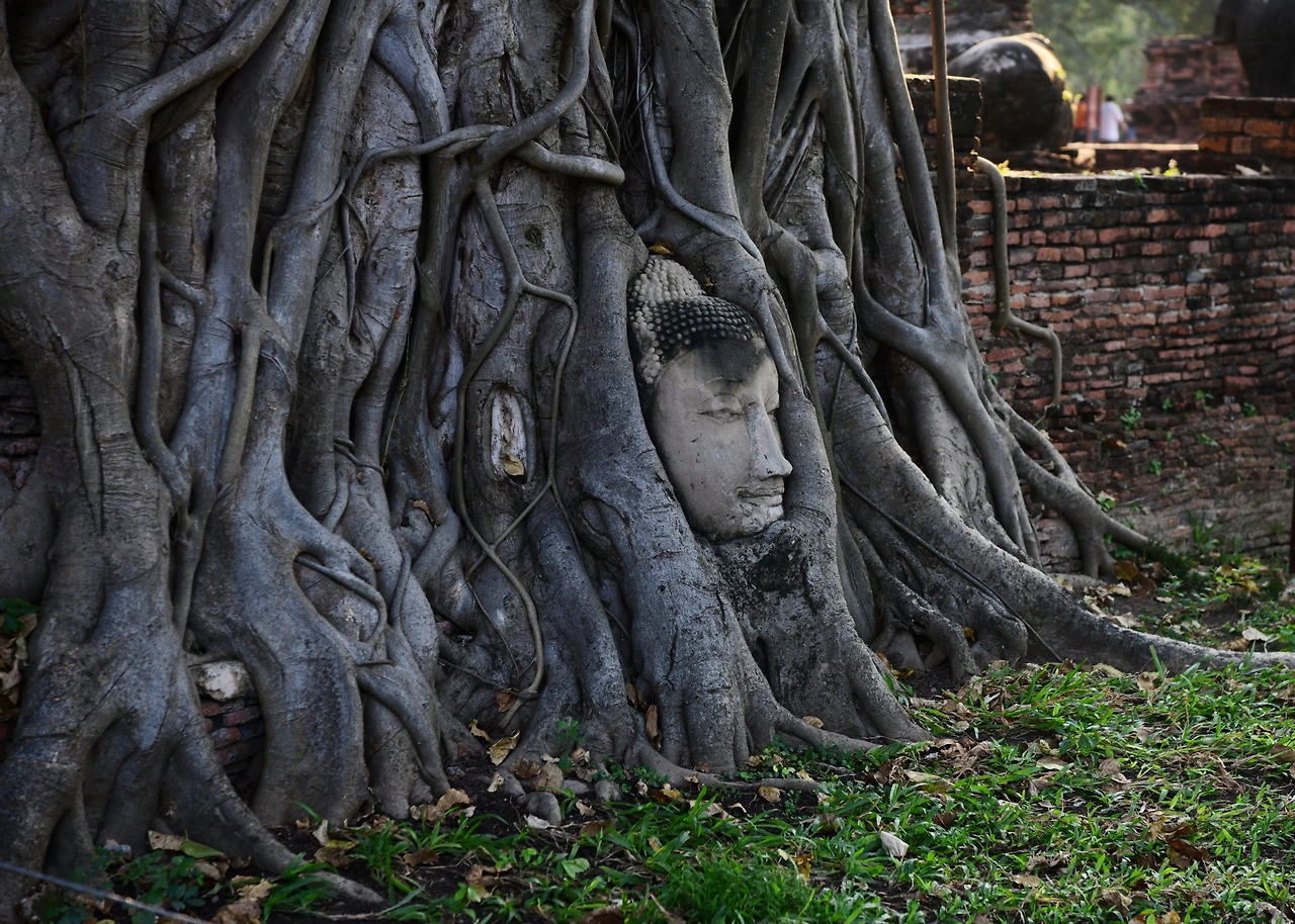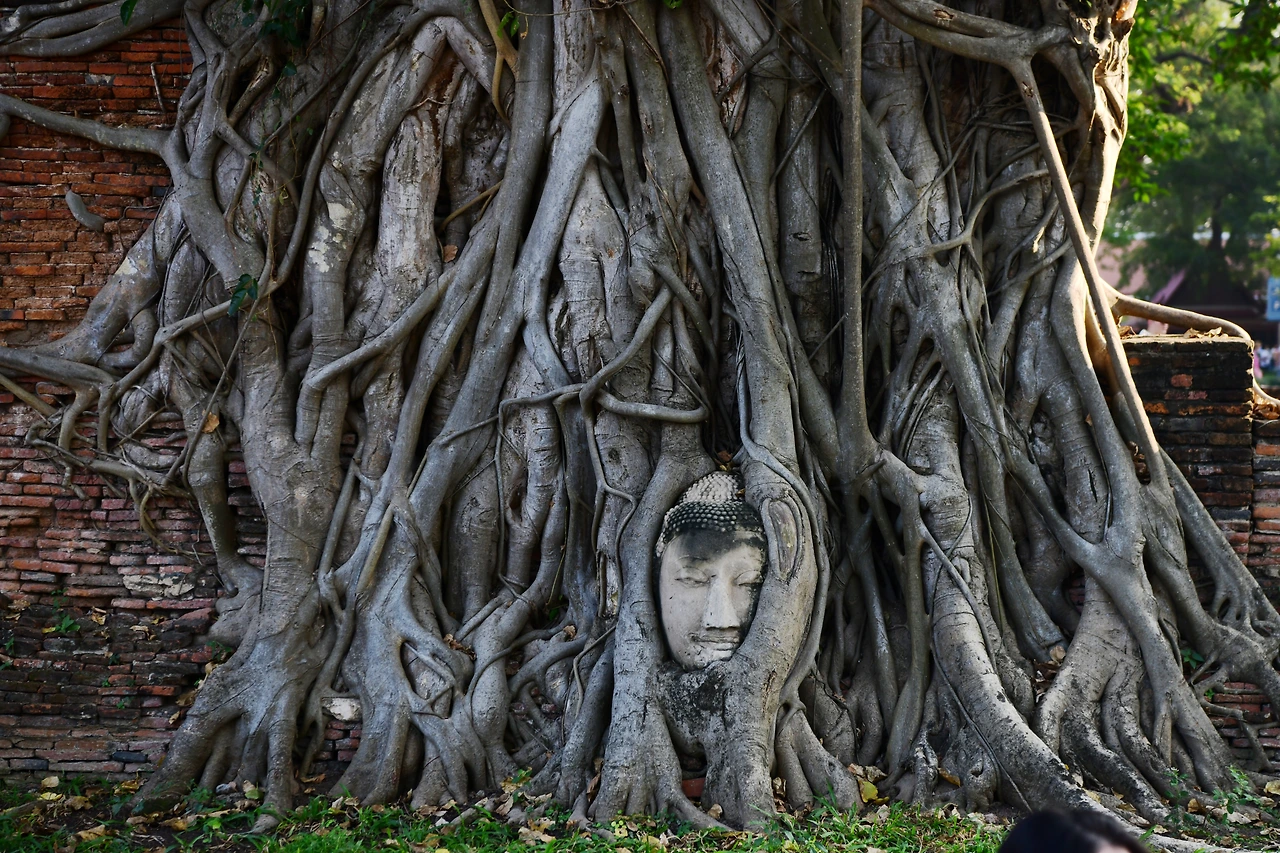 두 눈을 감고 있다. 보리수나무 아래 수많은 갈래로 뻗어 나온 뿌리가 감싼 얼굴은 평온하기 그지없다.미세하게 열린 눈꺼풀 사이 보이지 않는 눈동자는 어디를 향해 있는지, 극락의 세상인지, 홍진의 세상인지. 홍채가 향하는 곳이 궁금하다. 끊임없이 몰려드는 관광객들 사이, 그들이 일으킨 먼지와 소음으로부터 초연해 보이는 나무뿌리 아래 불상의 얼굴을 보고 있으니 영화 <더 파더)(2020년)의 주인공 안소니 홉킨스의 텅 빈 눈이 오버랩된다.