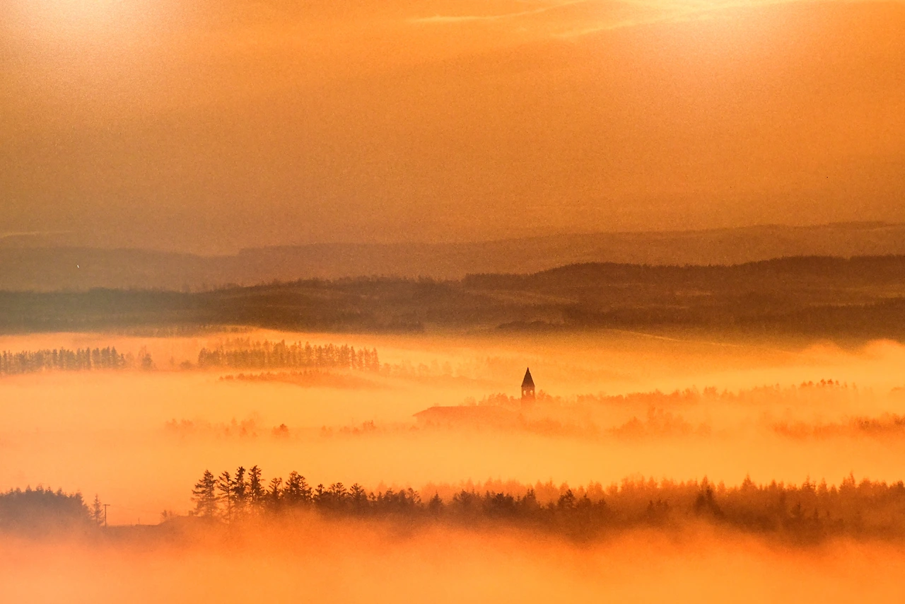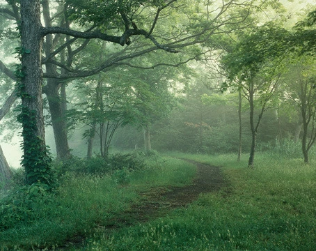 비구름이 한가득 산능선을 덮어 잠재우면 또렷해지는 곧은 나무의 형체들. 신을 향해 경배를 드리는 사제들로 변하는 경이로운 생명들.