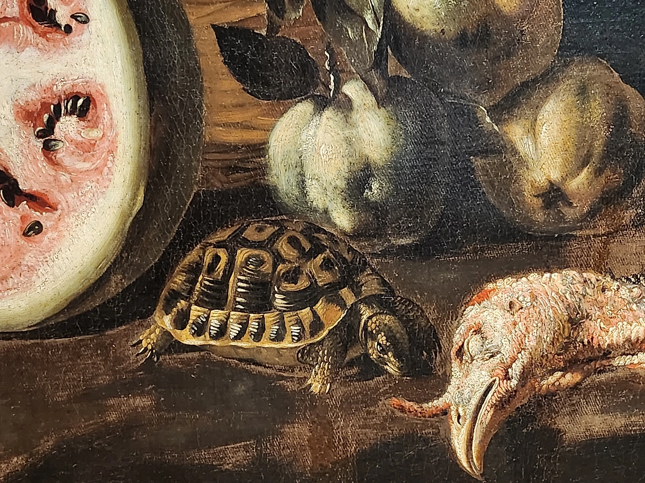 좌: 골리앗의 머리를 든 다윗 1605 우 : 과일과 개똥지빠귀가 있는 정물화 (작자미상)