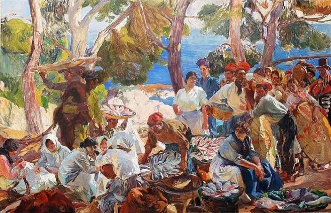 1863년 2월 스페인 발렌시아에서 태어난 그는 콜레라 대유행 때 부모님을 여의고 동생과 함께 외삼촌 댁에서 자랐다고 한다. 어릴 적부터 그림에 재능을 보였던 그가 마드리드 그림대회에서 2등 입상을 하고 로마로 유학을 가 재능을 꽃피우다가 가족들이 그리워 일찍 귀국을 했다고 한다. 결혼을 하고 꾸준히 가족들을 그리며 다양한 스페인 풍경과 사람들에 대해 기록하듯 그림을 그려온 그의 작품들을 이 날 처음으로 만나게 되었다. 호아킨 소로야의 그림들 중 "슬픈 유산"이 있다.
