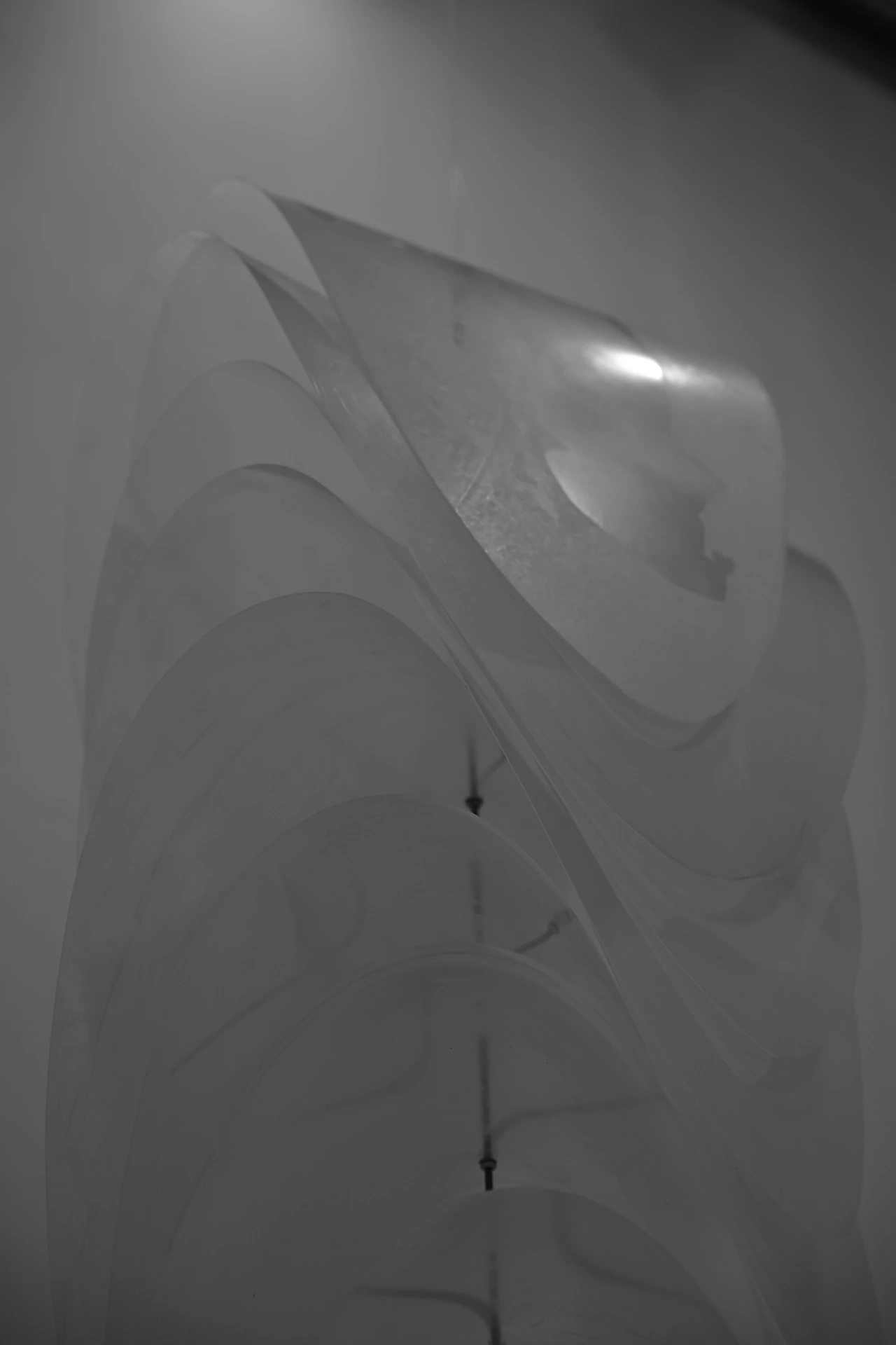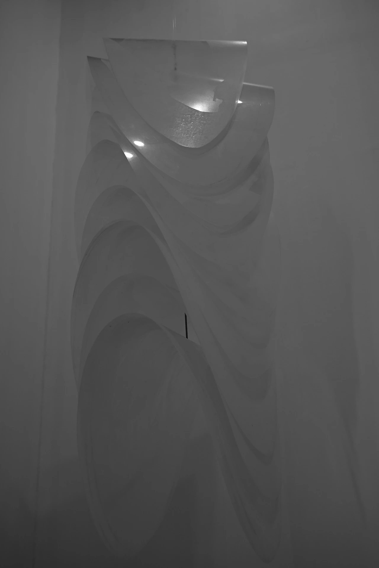 한쪽 구석에는 흰 빛의 보드라운 유선형의 비늘들이 회전하고 있다. 줄리아나 마츠무라 (Juliana Matsumura)의 <조상과의 열병 (Ancestral Fever)>이라 이름 붙은 설치미술품을 바라본다. 조상으로부터 물려받은 유무형의 유산을 다양한 크기의 플라스틱 판의 중첩으로 표현했다고 한다.