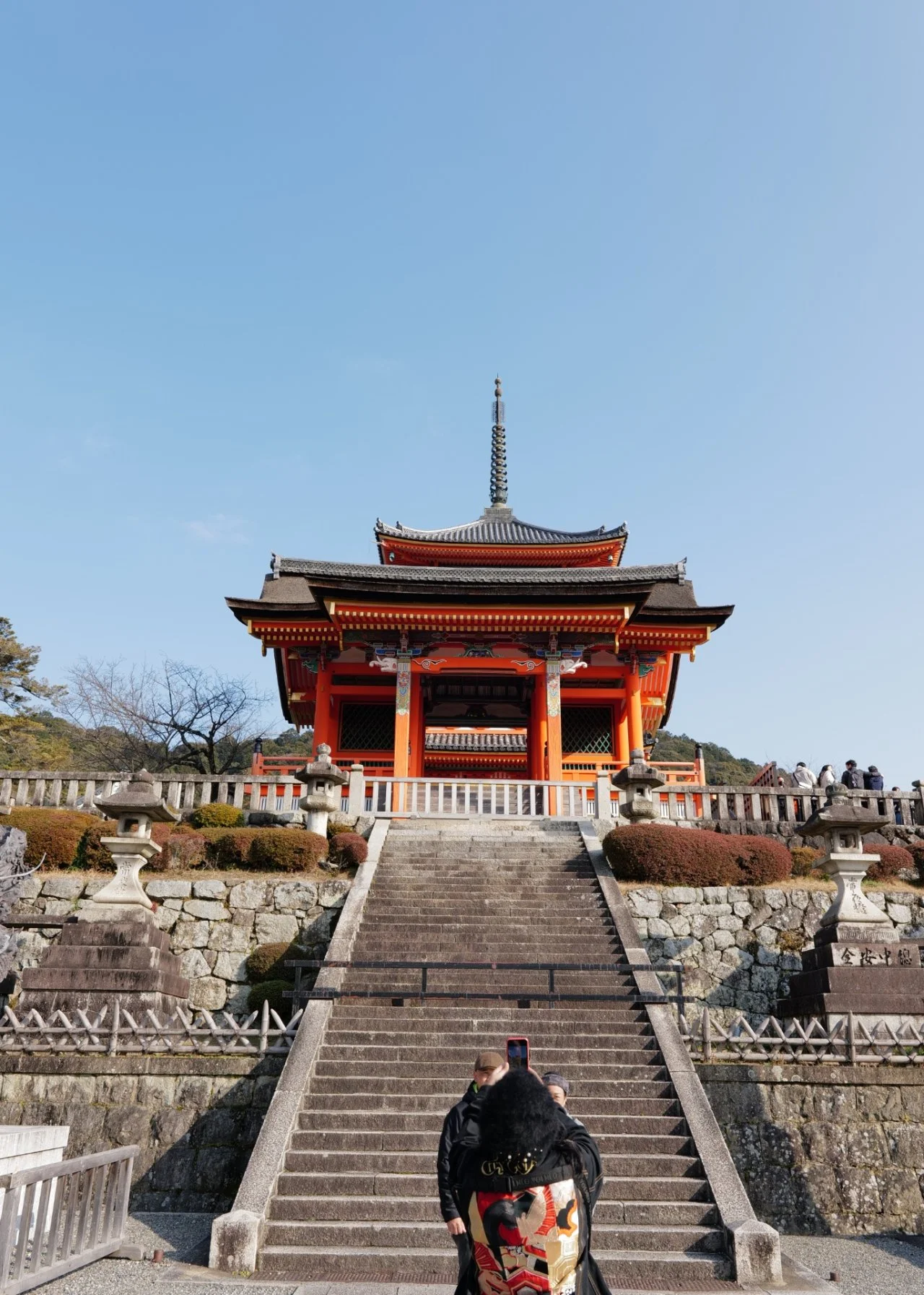 청수사라는 이름은 '키요즈미(淸水)', 순수한 물에서 유래했다는데 사찰 안 오타와 폭포에서 내려오는 샘물을 마시고 십일면천수관음보살상에 기원을 하면 소원하는 걸 다 이루어준다니 마음 속 가장 내밀한 나의 소원을 빌어보겠단 다짐으로 이 곳에 왔다. 사찰 입구를 지키는 엄청난 높이(약 31m)의 삼중탑을 지나 경내로 들어서는데 곳곳에서 기모노를 입고있는 젊은 연인들이 눈에 띈다. 개중에는 한국 젊은이들도 섞여 기념촬영을 하느라 바쁘다. 게다라는 폭이 좁고 발가락에 끼어 신는 그 신발을 신고 오종종종 걷는 걸 보고 있으면 보폭이 큰 나는 저리 쫑쫑 걷는 일이 엄두가 안나기에 감히 입어볼 시도를 못하겠다. 그래도 환하게 웃으며 이국의 문화를 경험하는 청춘들의 얼굴엔 불편함 하나없는 맑음 뿐이다. 저런 천진과 낭만이 좋다. 가장 이쁜 나이 아닌가.(야~~ 야야! 내 나이가 어때서! 어디선가 고여사님 노랫소리가 환청으로 들린다. 엄마 내가 일본 온 지 모르는데...)