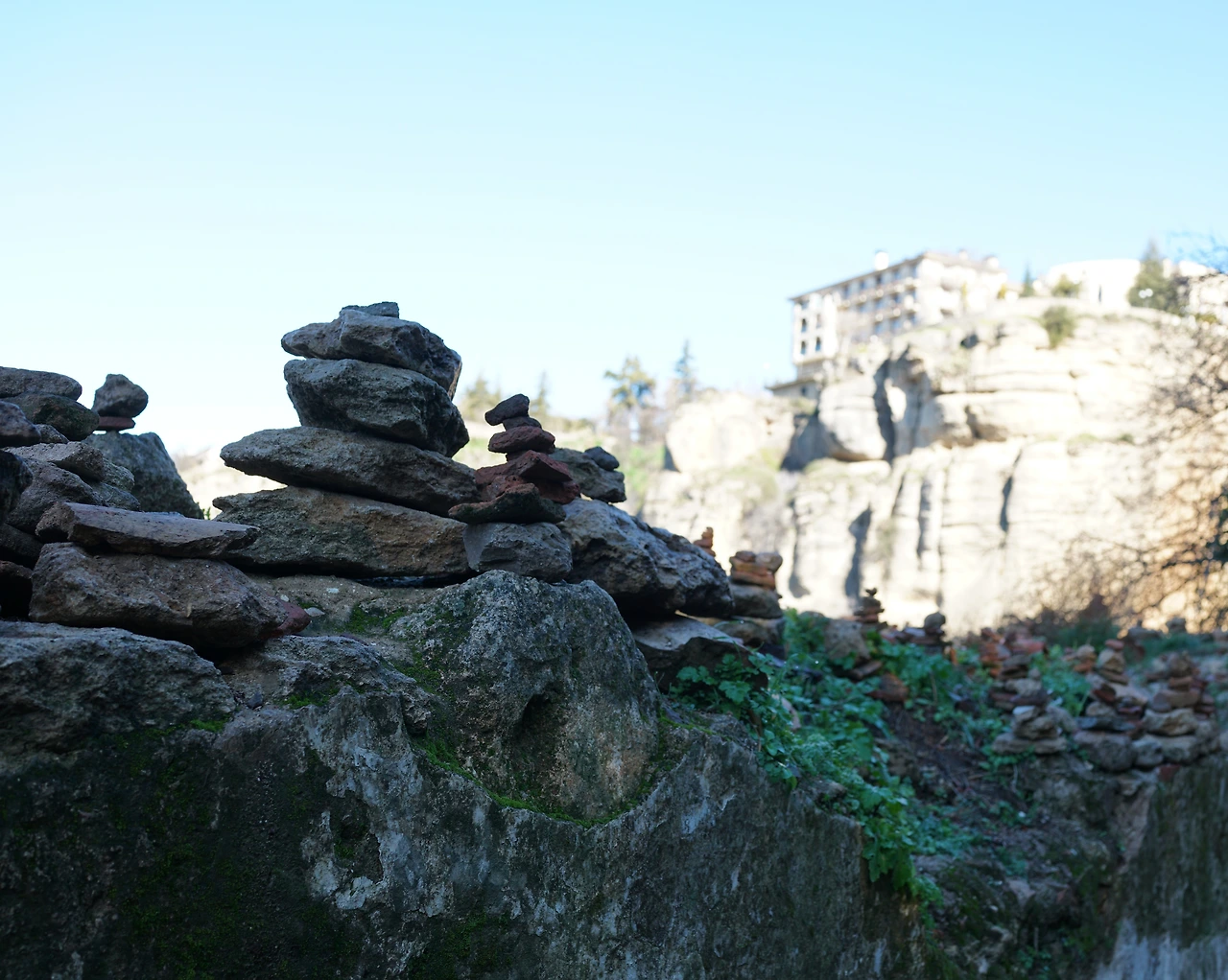 740미터 높이의 두 개의 절벽 마을을 연결하는 "누에보"다리는 스페인어로 새로운 이라는 뜻을 갖고 있다고 한다. 이름과는 달리 지금의 다리는 1793년 2번째로 지어진 다리인데 처음 1735년 착공해서 35미터쯤 지어졌을 때 다리가 무너져 내리는 사고가 났고 그때 50여 명이 사망하는 사건이 있었다고 한다. 이후 20여 년이 지나서야 공사가 재개되었고 그렇게 완공된 다리가 바로 지금의 누에보 다리이다. 위풍당당한 모습이 팔짱을 끼고 선 북유럽 신화 속 수문장 같다. 화강암으로 된 석벽 위로 드문드문 이끼를 머금고 자리한 다리를 보고 있으니 인간이 창조한 아름다움이 전해주는 온기가 고스란히 내게 전해진다. 햇살을 받아 달궈졌을 돌 위에 볼을 얹고 눈을 감는다. 올리브 나무를 키워낸 건조하고 따뜻한 바람이 감은 눈 위에 머무르며 햇빛을 퍼뜨린다. 계속 따라붙던 소들의 울음소리가 사라지고 이 도시를 찾은 수많은 이들의 다양한 언어들과 저마다의 어조들이 음률도 다가온다.