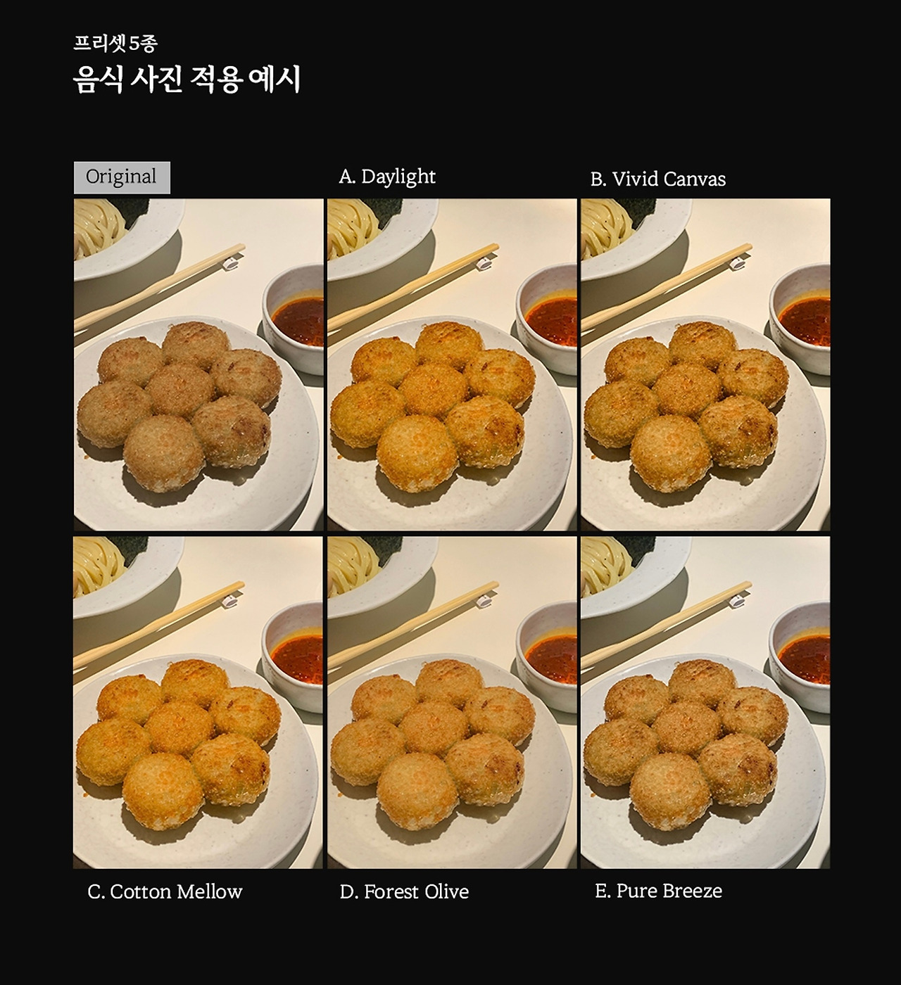 푸x, 소x, 스xx 등을 사용하는 이유 중 하나가 만들어진 보정값을 쉽게 적용해 사진을 찍을 수 있기 때문인데, 같은 맥락으로 이미 찍은 사진을 추후에 쉽게 보정할 때 사용하는 게 ‘프리셋’이다.