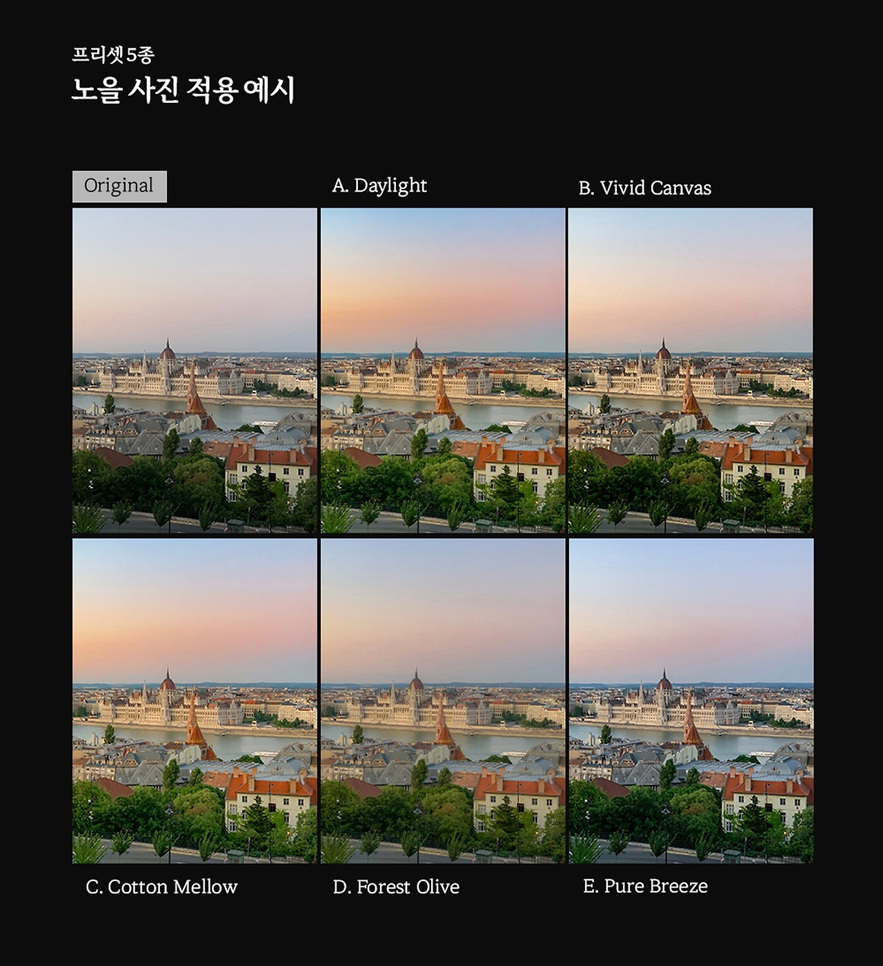 내가 찍은 사진에 이미 만들어진 보정값을 클릭 한 번으로 만들 수 있는 ‘색감 필터’