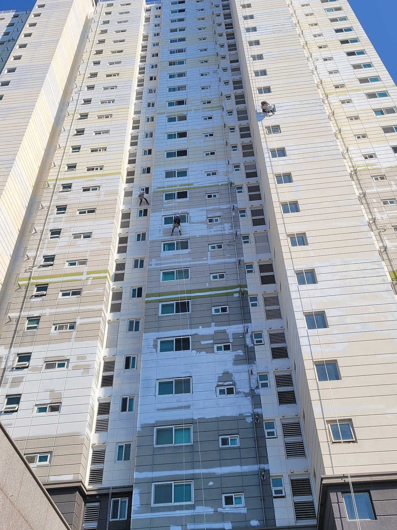 8월 동아줄에 의지한 세 명의 노동자가 햇빛을 온몸으로 받으며, 달궈진 콘크리트의 열기를 품에 안고서 페인트를 칠하고 있다. 언제였던가. 그리 멀지 않은 시기였던 것 같은데 아파트 외벽에 페인트 작업을 하던 사람의 동아줄이 끊어진 사건이 생각난다. 정확히는 누군가가 인부의 생명줄을 잘라낸 사건이다. 일면식도 없는 무고한 노동자의 생명줄을 끊은 사람의 심리는 또 뭐란 말인가.