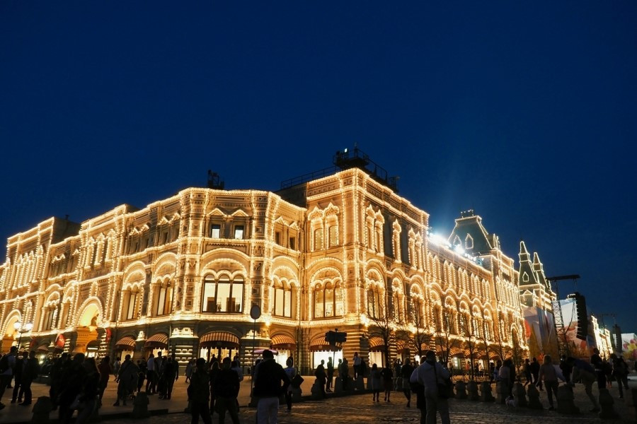 붉은 광장의 밤을 밝히는 굼 백화점. 서울의 대형 백화점 2, 3개를 이어 붙인 규모의 굼(Gum) 백화점을 만날 수 있다. 사실, 크렘린과 성 바실리 성당을 구경하다 보면 바로 옆에 있는 백화점이라 뭐가 있겠나 싶지만 그 내부는 굉장히 아름답다. 놀라움을 금치 못할 만큼 화려한 외관을 지나 입구에 들어서면, 백화점이라는 건물이 상징하는 통념은 사라지고 200여 개의 점포는 한치의 오차도 없는 완벽한 균형감을 보여준다. 유리 지붕은 외부 날씨와 관계없이 안락한 자연 채광을 선사하고 밤에 온 굼 백화점은 마치 우주선에 타있는 기분마저 들게 한다.