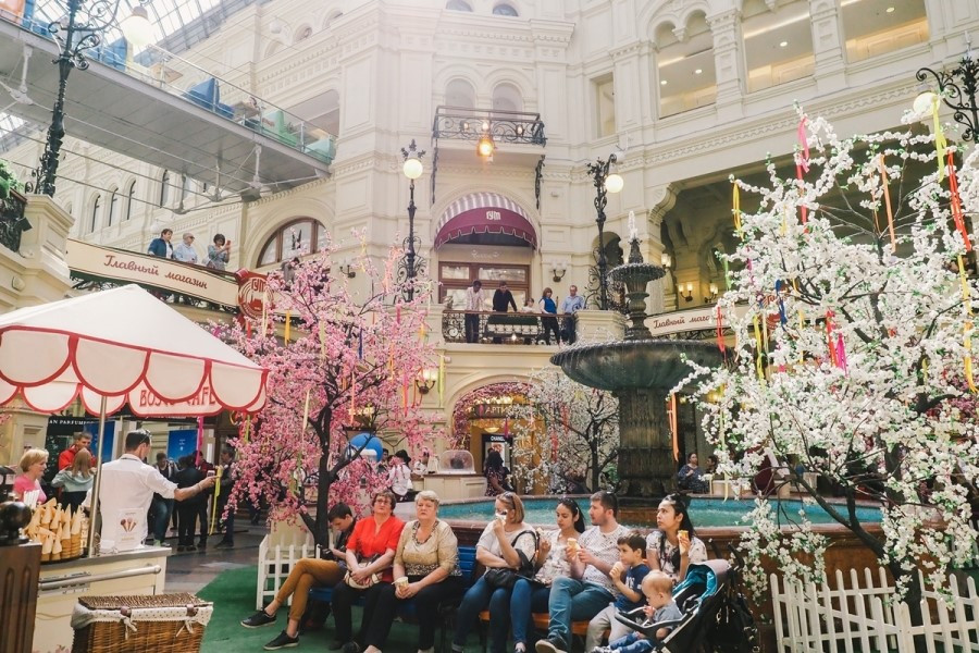 압도적인 화려함을 자랑하는 굼 백화점은 아이러니하게도 '공장'이었다. 1889년 공장으로 건립되어 러시아 혁명과 스탈린 독재 체제를 겪으며 1,200여 개의 점포를 가진 국영 백화점으로 변화했다. 공장에서 상점, 그리고 백화점으로 공산주의의 상징에서 자본주의의 첫걸음이 된 이곳은, 압도적인 외관에 이끌려 들어와 양손에 쇼핑백 하나 없이 나가도 전혀 아쉬울 것이 없는 명소이다. 1층에 있는 작은 슈퍼마저도 묘한 분위기를 풍긴다. 특히 4층 푸드코트는 러시아 음식을 한 곳에 모아 놓았기 때문에 이것저것 먹어 보기 좋다. 또한 많은 사람들이 아이스크림을 사 먹는데 꼭 한번 먹어보도록 하자.