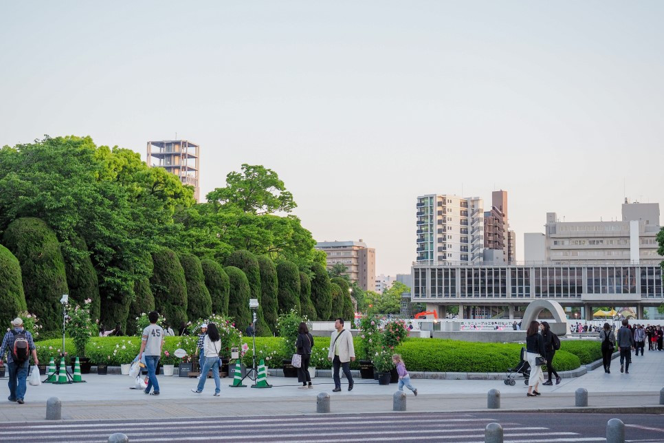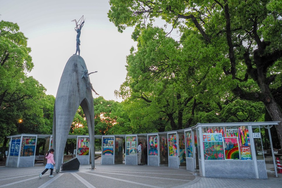 히로시마 평화기념공원은 세계에서 처음으로 원자폭탄이 투하된 히로시마에 세계 평화를 기원하며 조성한 공원이다. 공원 내에는 평화기념 자료관을 비롯해 원폭 희생자 위령비, 원폭 어린이 상, 한국인 피폭자 위령비 등을 세워 원폭으로 희생된 사람들을 위로하고 있다. 공원 가운데 원폭 희생자 위령비가 세워져 있다. 정면에서 바라보면 둥글게 솟은 아치형 위령비 사이로 강 건너 원폭 돔이 보인다. 위령비가 원폭 돔을 감싸고 있는 모습인데, 원폭 피해를 입은 사람들을 위로하는 것처럼 보인다. 입구에는 평화의 시계탑이 뒤틀린 모습으로 세워져 있다. 원폭이 투하된 시각인 오전 8시14분마다 시계탑의 종이 울린다.