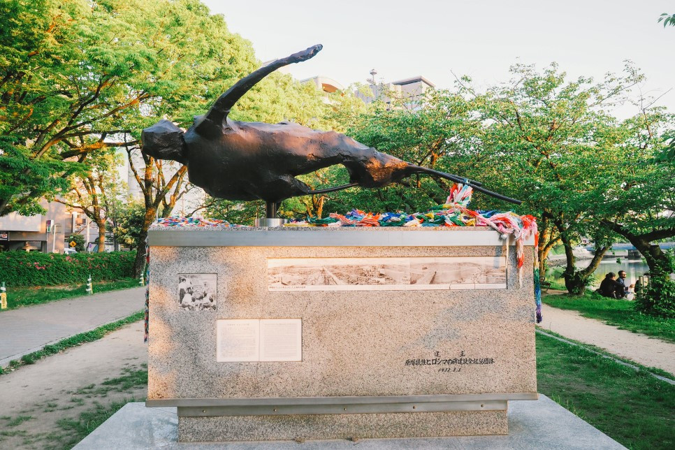 일본에서는 장수와 평화를 상징하는 종이학 1000마리를 접으면 병이 낫는다고 한다. 원폭 피해를 입은 소녀는 이런 이야기를 믿고 종이학을 접었다. 그러나 소녀는 종이학 1000마리를 다 접지 못하고 964마리의 종이학을 접은 뒤 사망했다. 이 사실이 알려지자 일본 각지의 어린이들이 종이학을 접어 보내기 시작했다. 지금도 여전히 공원에는 학이 배달된다.
