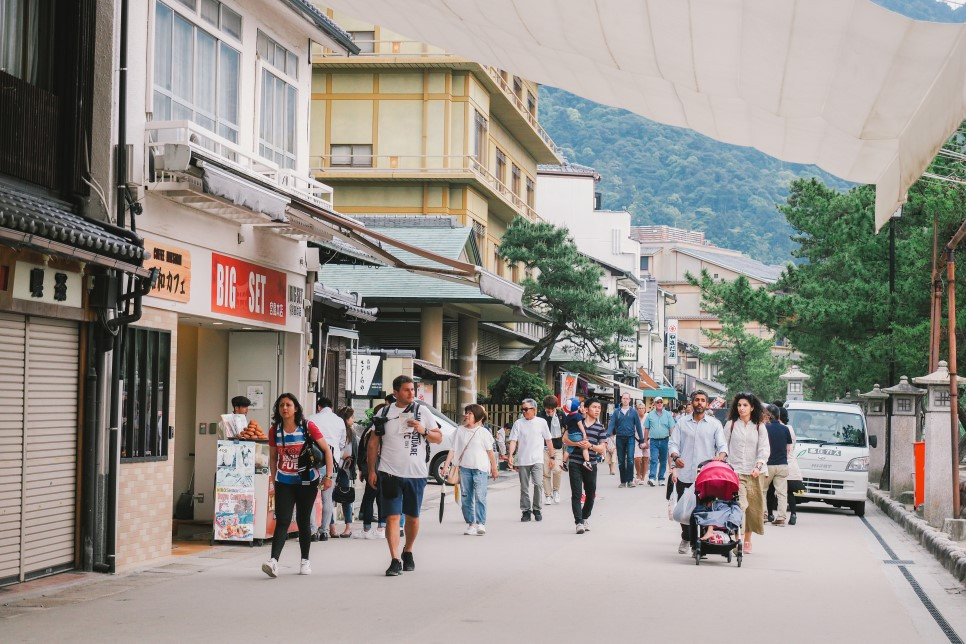 이쓰쿠시마 신사, 오토리이 가는길에 오모테산도 상점가가 쭉~ 이어진다.