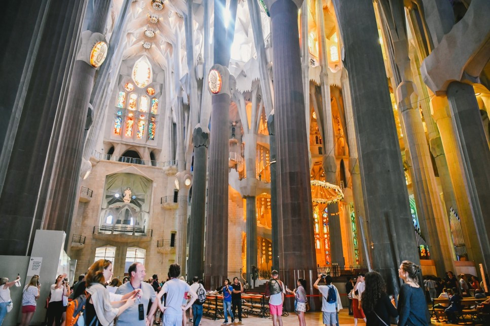 마지막 장소는 100년 넘게 공사 중인 성가족 성당(사그라다 파밀리아)을 구경했다. 사실 바르셀로나 거리로 나서면 곳곳이 가우디의 작품이다. 1882년 짓기 시작한 대성당 사그라다 파밀리아는 아직도 현재 진행형이다. 가우디의 건축물 중 웅대한 규모에 있어서 첫손가락에 꼽힌다. 예수의 열두 제자를 상징하는 12개의 종탑과 돔은 창공을 찌를 듯 솟아 있다. 가우디는 40여 년간의 생애를 대성당 건설에 바쳤고 사후에도 성당 지하에 안치됐다.