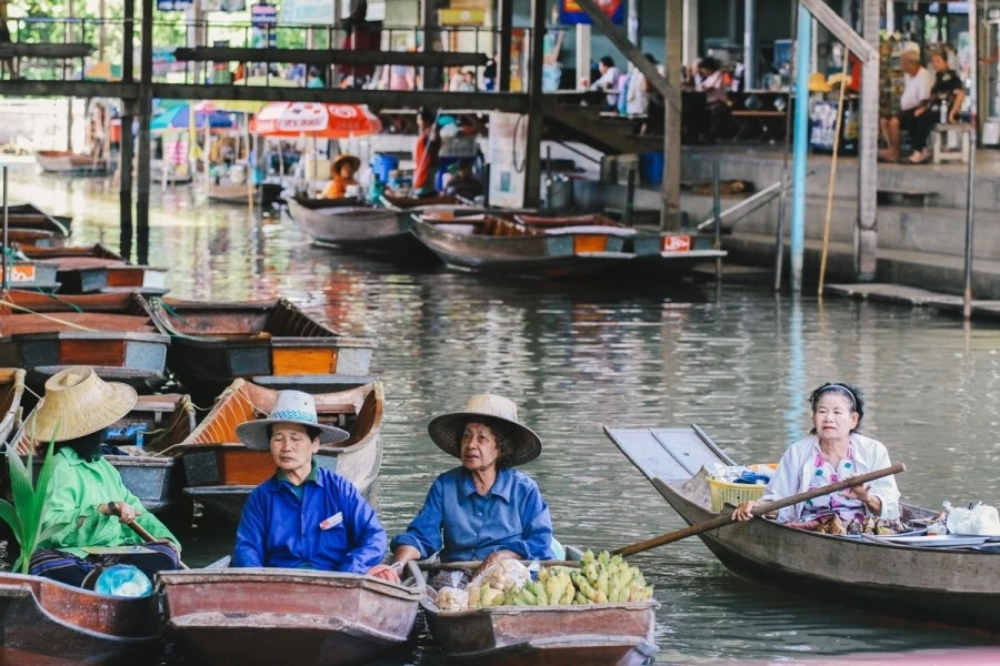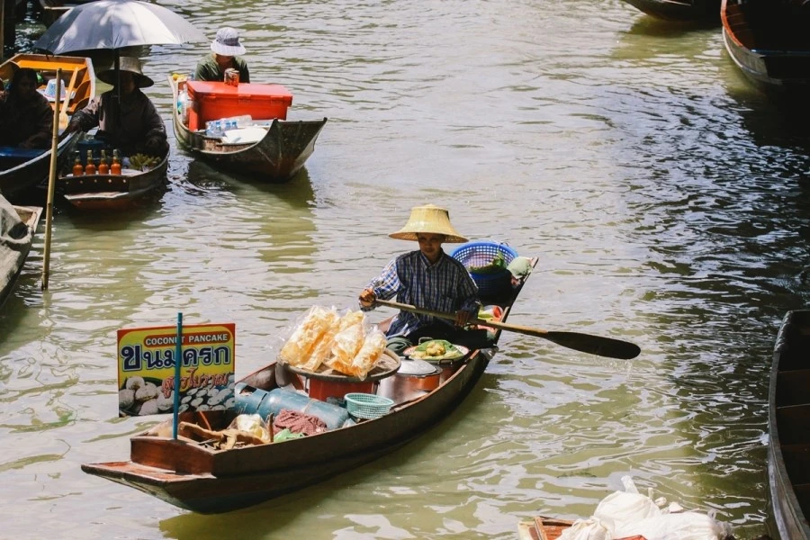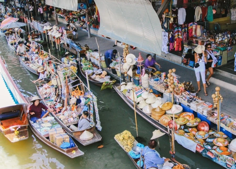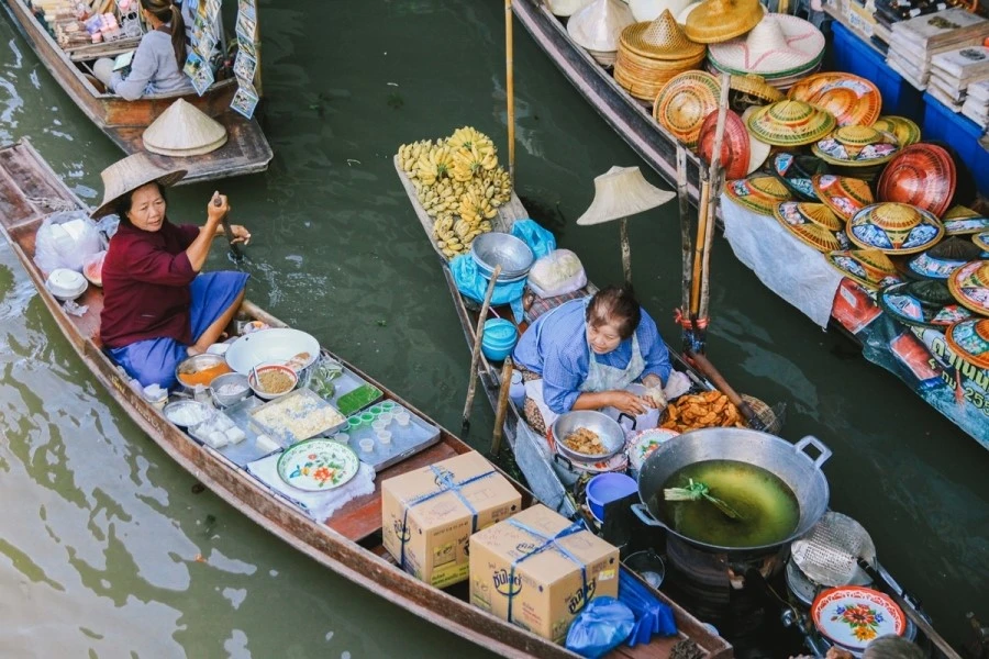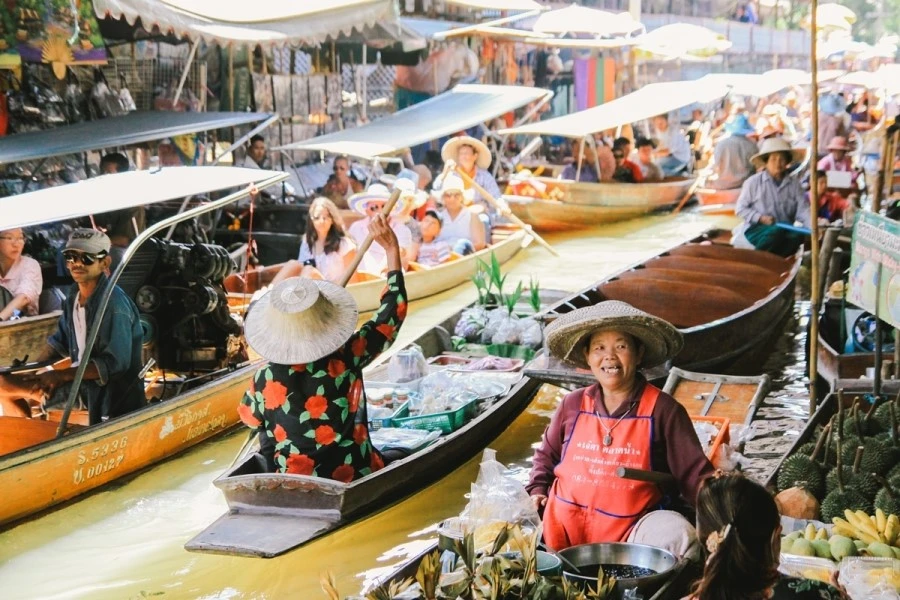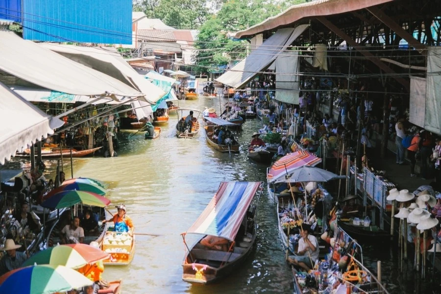 방콕 근교, 규모가 가장 큰 수상시장에서 색다른 삶의 모습을 보다.