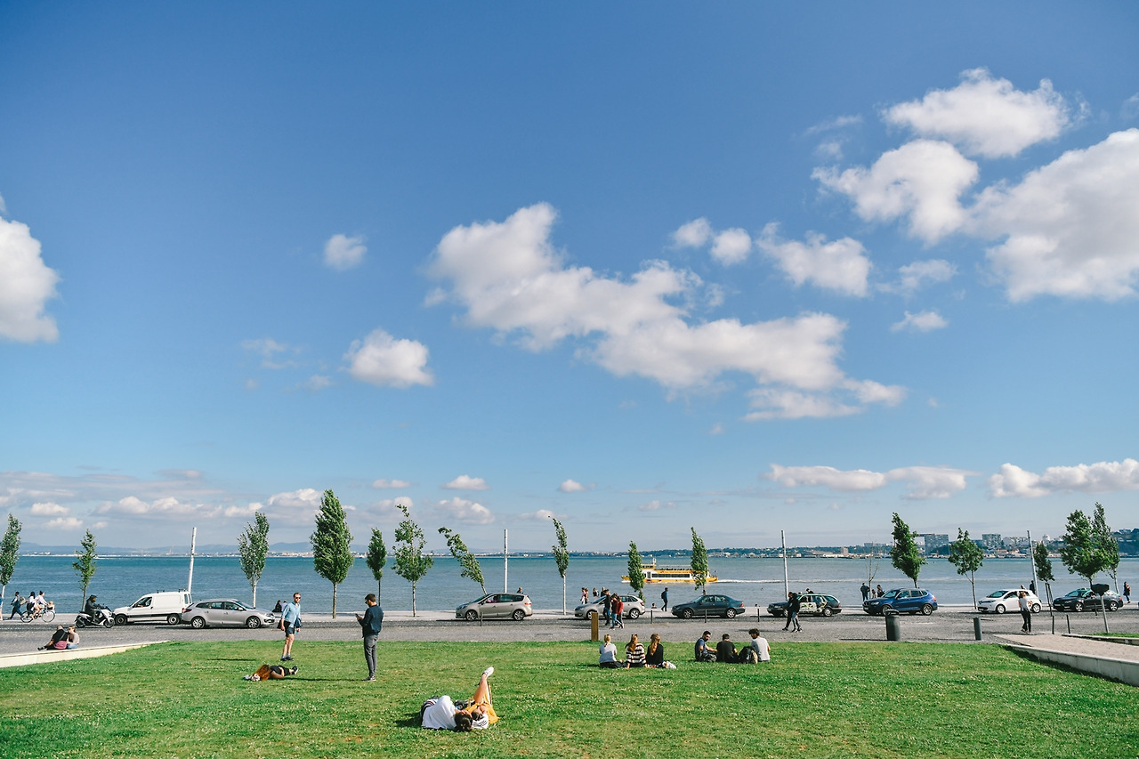 테주 강 옆 코메르시우 광장 전망대에 서면, 도시의 언덕과 광장이 한눈에 담긴다.코메르시우 광장을 향해 쭉 뻗은 8월의 거리, 브라질 최초의 황제가 된 페르도 4세의 동상을 중심으로 오페라 극장, 호시우 기차역으로 둘러싸인 호시우 광장이 훤히 내려다보인다. 테주 강변은 벨렘지구를 가기위한 사람들이 많이 걸어가는 길목이다. 테주강변에서 멀리보면 벨렘지구 항해를 기념하는 기념탑도 보인다. 날씨가 좋은 주말에는 많은 사람들이 멍때리고 앉아 리스본 도시 자체를 즐기고 있는 기분이었다.
