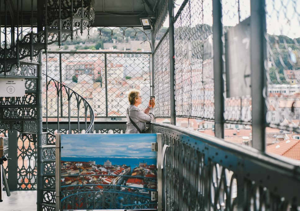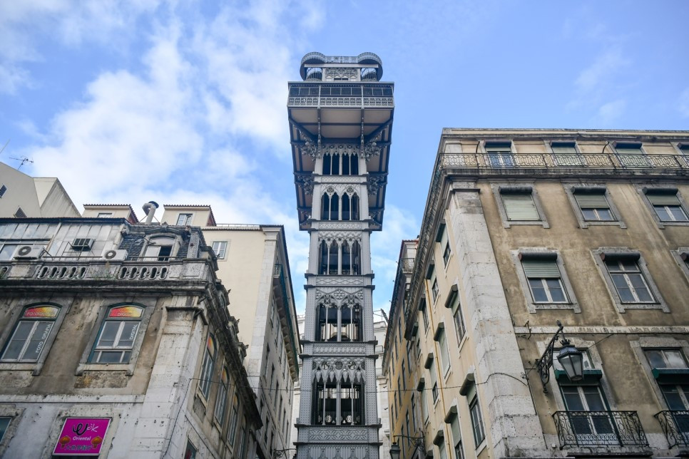 산타주스타 엘리베이터(Santa Justa Elevador). 100년이 넘은 엘리베이터이다. 에펠탑을 만든 에펠의 제자가 만들었다는 독특한 철제 외관과는 달리, 내부는 마치 오래된 마차 같은 목재 엘리베이터 2대가 균형을 이루어 운행하고 있다. 엘리베이터를 타고 높이 45m 전망대에 오르면 로시우 광장은 물론이고 테주 강이며 상 조르제 성이 한눈에 보인다. 따지고 보면 대도시마다 있는 전망 탑이나 스카이라운지보다는 한참 못 미치는 전망대다.
