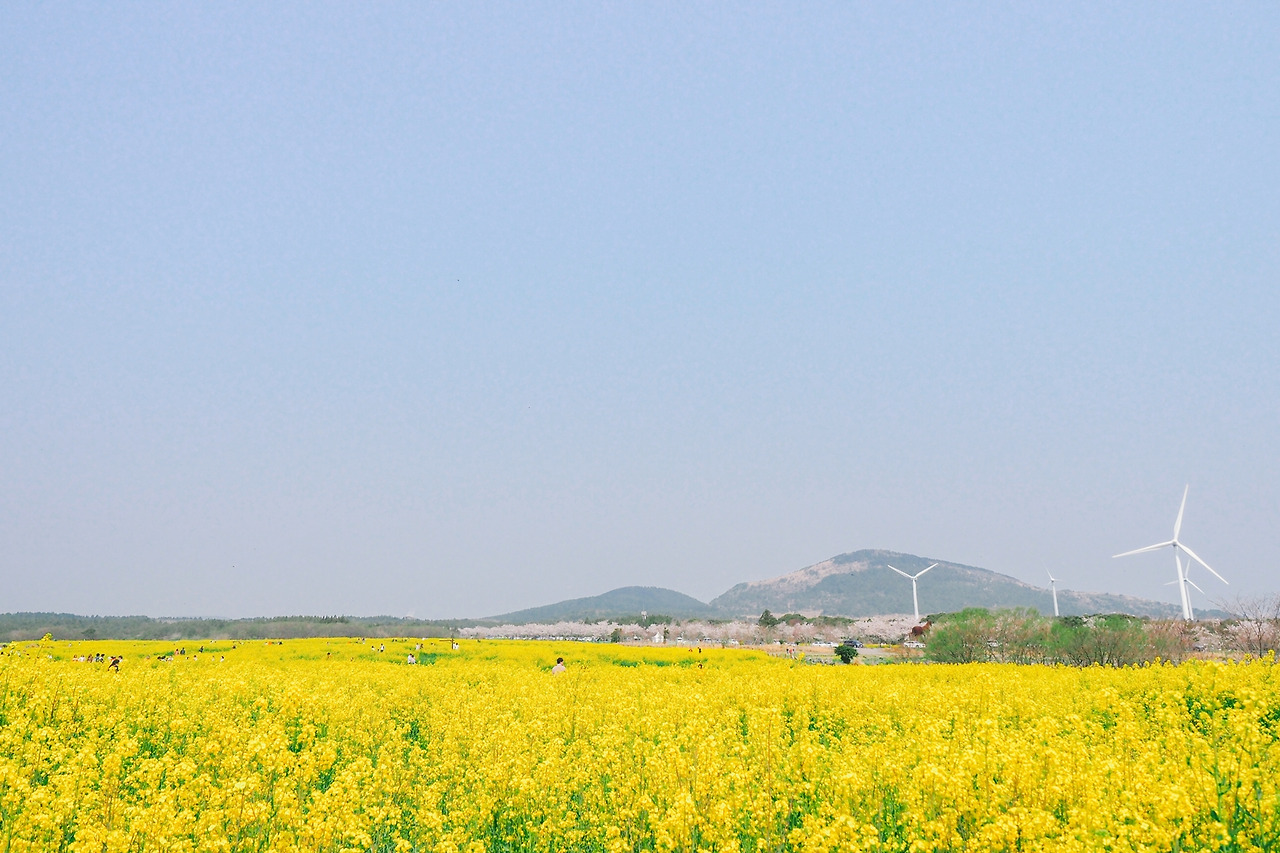 4월 제주에서는 들판마다 샛노란 유채꽃이 황금빛 바다를 이룬다. 서귀포 표선면 가시리의 중산간 마을을 관통하는 녹산로가 특히 유명하다. 길 양쪽으로 만발한 유채꽃이 환상적인 분위기를 자아낸다.