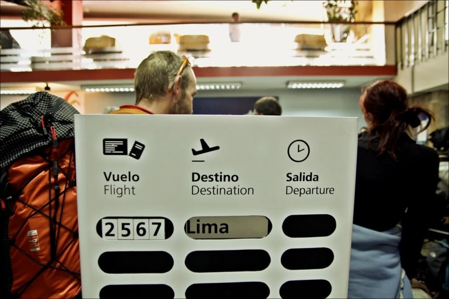 플랫폼에 서서 보면 5분 간격으로 지구 반대편까지 날아가는 비행기의 시간들로 빼곡하다.