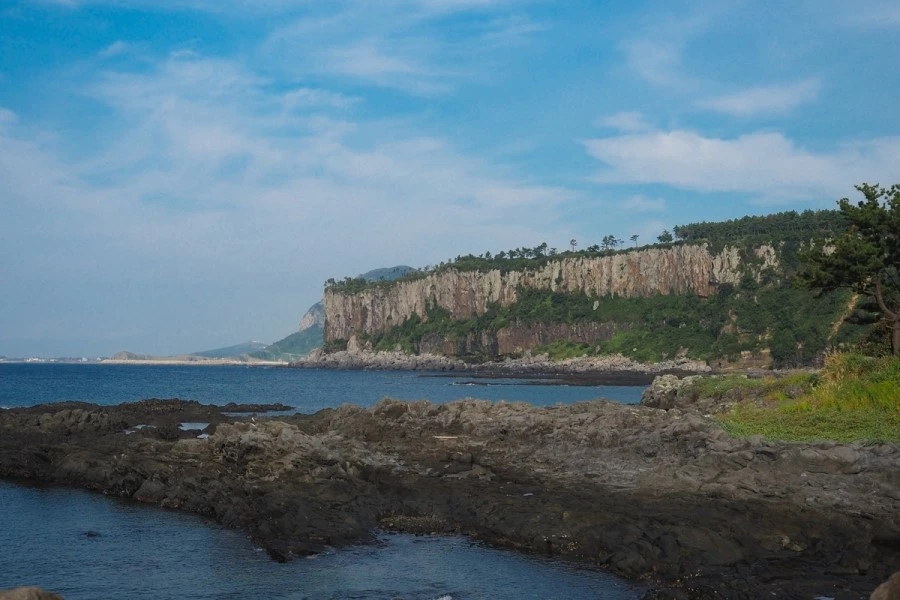 대평리 포구에서 바라다보이는 주상절리가 잘 발달한 해안절벽