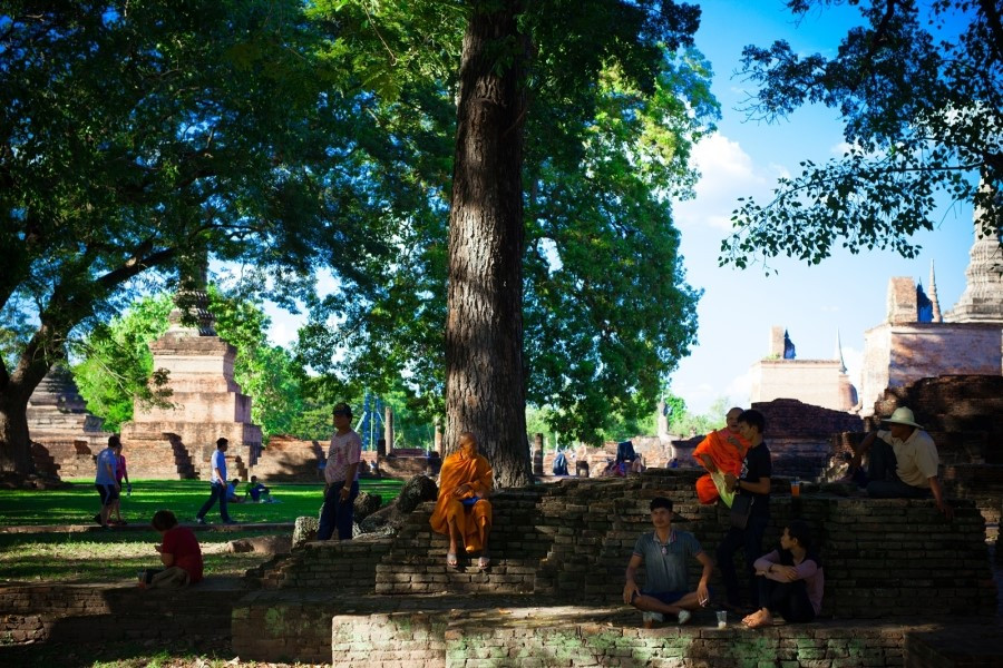 수코타이 역사 공원에서 온종일 많은 사람을 열심히 만나고