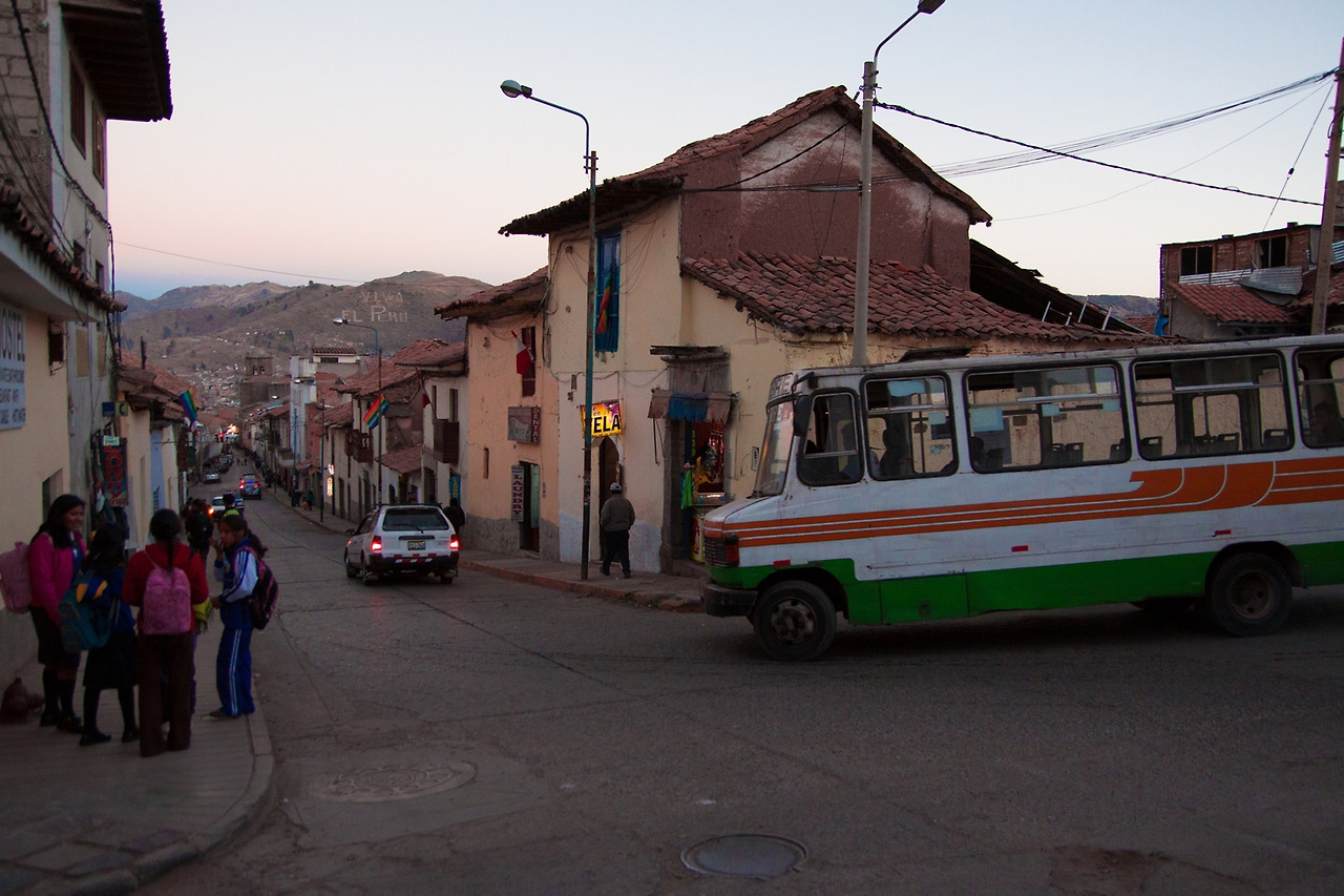 페루 쿠스코 오후 작은 골목 버스정류소에서