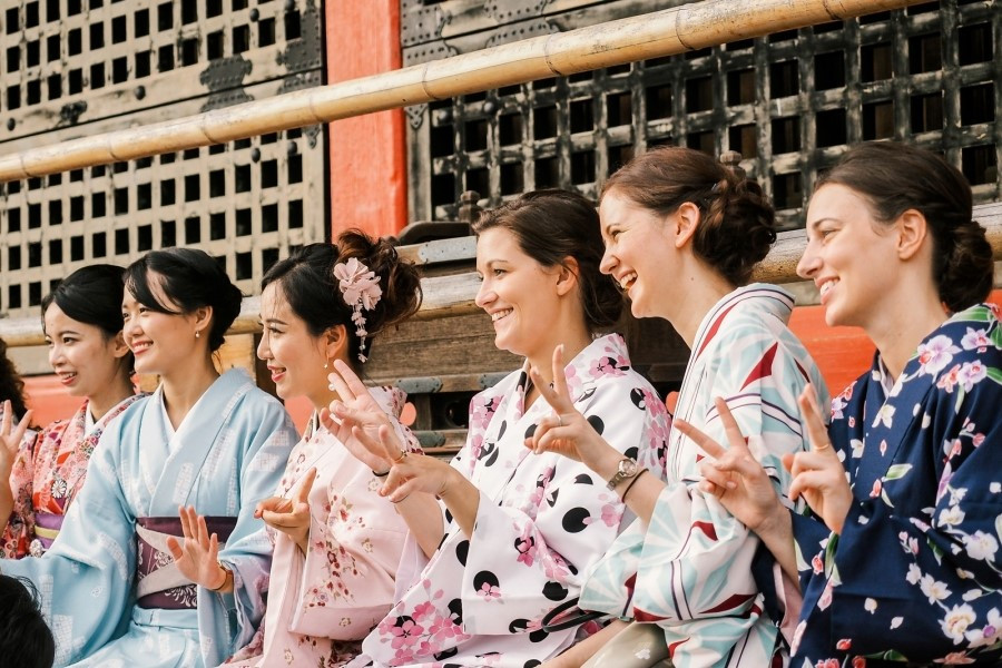 교토 기요미즈데라에서 만난 기모노 입은 사람들