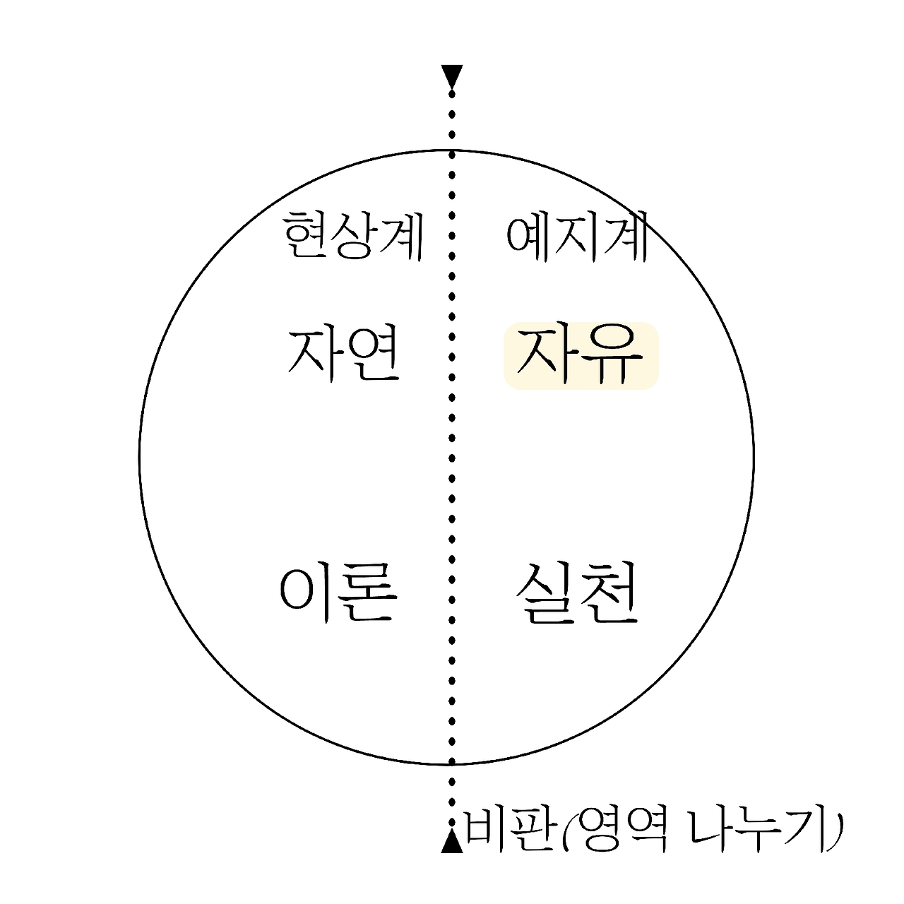 우리는 칸트가 주관하는 순수 이성 비판의 법정에서 자기의식이 무엇인지 알게 되었고, 대상성을 그 자기의식에 의해 파악할 수 있게 되었다. 그런데 이 법정이 진행되며 우리 이성 능력 일반에 대한 한계가 있음을 깨닫게 된다. "우리 그동안 물자체로서의 대상이 아니라, 현상으로서의 대상에 대해서만 다뤘잖아? 그러면 우리가 인식하지 못하고, 경험하지 못하는 것들은 어떡해?" 칸트도 이 부분을 충분히 인지하고 있다! 그래서 영역을 나누는(Krinein) 선을 하나 그어주게 된다. 이것이 비판(Kritk/Critique)의 의미이다.