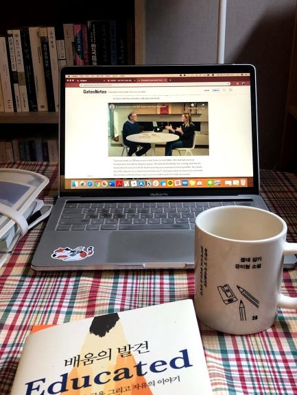 원래는 집에 소파가 없었는데요. 최근에 구입한 뒤로는 이 곳이 저의 페이보릿 장소가 되었어요. 소파에서는 세상 편한 자세로 책을 읽을 수 있지만.. 편한 자세 = 허리와 목에 안 좋은 자세이기 때문에 소파에서는 웬만하면 책을 읽지 않기로 했답니다(흑흑)