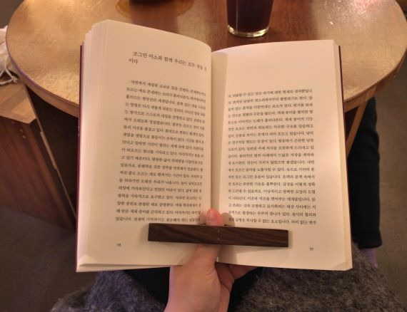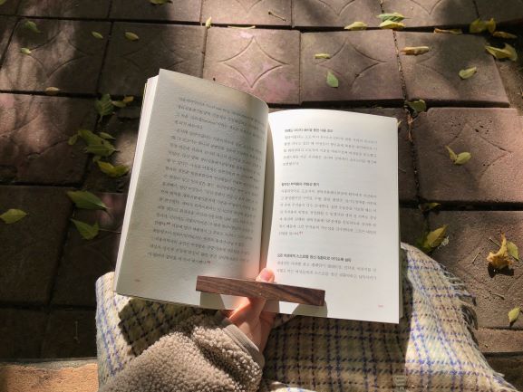 프란드의 엄지북홀더는 처음 만났을 때 정말 엄청난 신세계였습니다. 한 손으로 책을 이렇게 힘 있게 고정시킬 수 있다니.. 하면서 감탄했던 기억이 나요. 원목의 질감도 향도 무척 마음에 드는 제품이라 사용하지 않는 날도 꼭 챙겨 나갑니다.