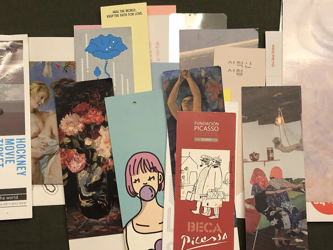 제가 또 책갈피 욕심이 있는 사람이라..(뭔들..) 전시를 보거나 독립서점에 방문할 때면 꼭 하나씩 받거나 산답니다. 그 덕에 이제 더 사지 않아도 될 정도로 모였네요. 이렇게 여럿 모아두고 사용하면 그 날 그 날 기분에 따라 골라 들고 나갈 수 있어서 좋은 것 같아요. 작은 변화들이 생각보다 큰 산뜻함을 주더라구요.