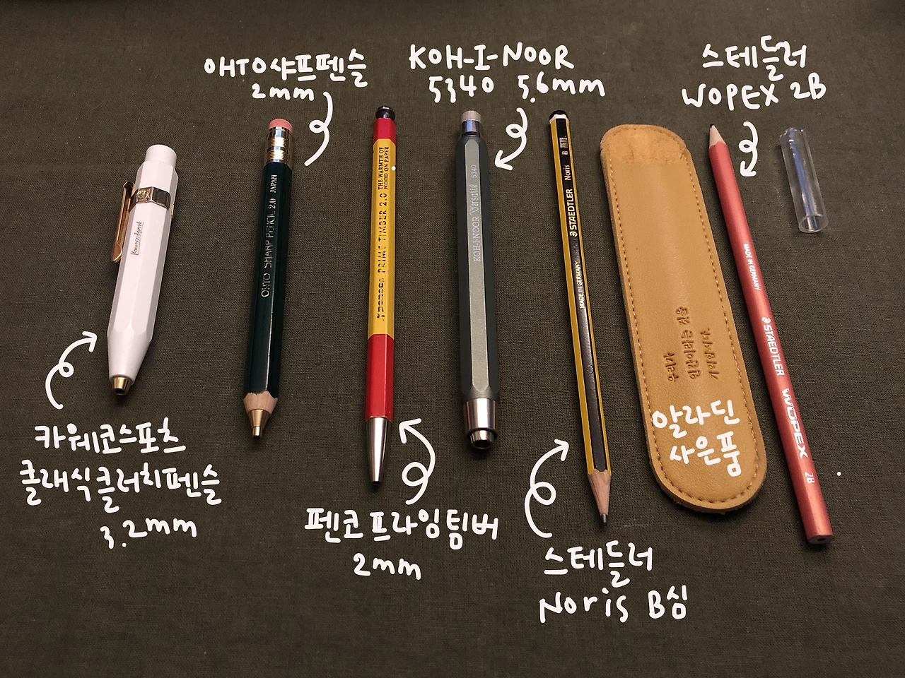 특히 카웨코와 오토 제품은 무게가 가벼워서 들고 다니기에 부담이 없어요. 굵기도 적당하구요. 코이누어 제품은 진짜 두껍고 진짜 무거워서 주로 집에서만 씁니다.