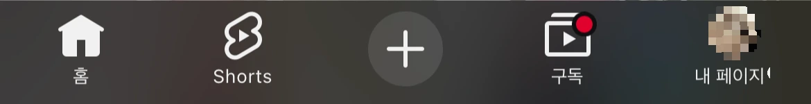 유튜브 앱 하단 메뉴를 보면 홈 / Shorts / 구독 / 보관함 순서로 배치되어 있다.