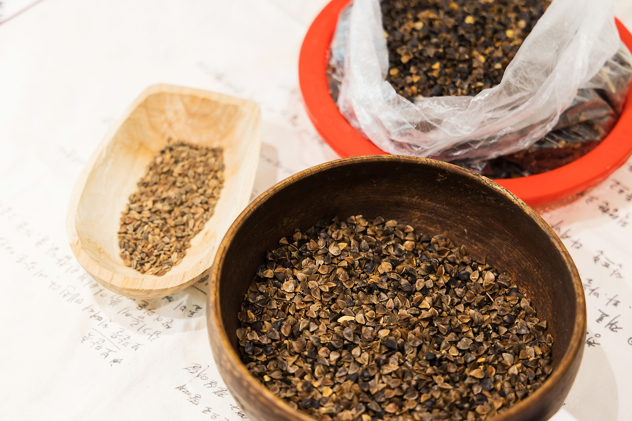 한라산 아래 첫 마을은 표선 제주민속촌에 2호점을 오픈했는데, 식당 바로 옆 메밀문화원에서는 다양한 메밀의 기록을 들여다볼 수 있다. 우연히 나는 관장님을 뵙게되어, 제주의 메밀, 쓴메밀, 중국의 메밀에 대한 이야기들을 좀 더 자세히 듣게 되었다.