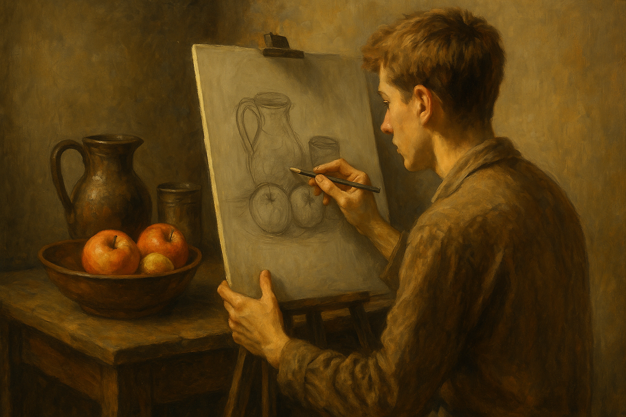 네 번째로는 윤곽선을 맹목적으로 따라가 보는 것입니다. 눈으로 그려보는 것이죠. 이는 미술가들이 가장 많이 하는 관찰 훈련입니다. 뇌가 "이건 손가락이야"라고 '판단'하기 전에, 눈이 '보는' 속도를 손이 따라가게 합니다. 자신의 손이나 앞에 놓인 사물을 봅니다. 연필을 든 손은 종이만 보고, 시선은 '절대' 종이를 보지 않고 오직 대상의 윤곽선만 10분간 천천히 따라갑니다. 그림은 괴상하게 나올 것입니다. 그래서 재미있습니다. 하지만 그 과정에서 대상의 모든 미세한 굴곡과 변화를 평생 그렇게 집중해서 본 적이 없을 만큼 몰입하게 됩니다. '개념'이 그림을 그리는 것이 아니라, '눈'이 직접 그림을 그리게 하는 최고의 훈련입니다. 베티 에드워즈가 말한 '오른쪽 뇌로 그리기'의 실천입니다.
