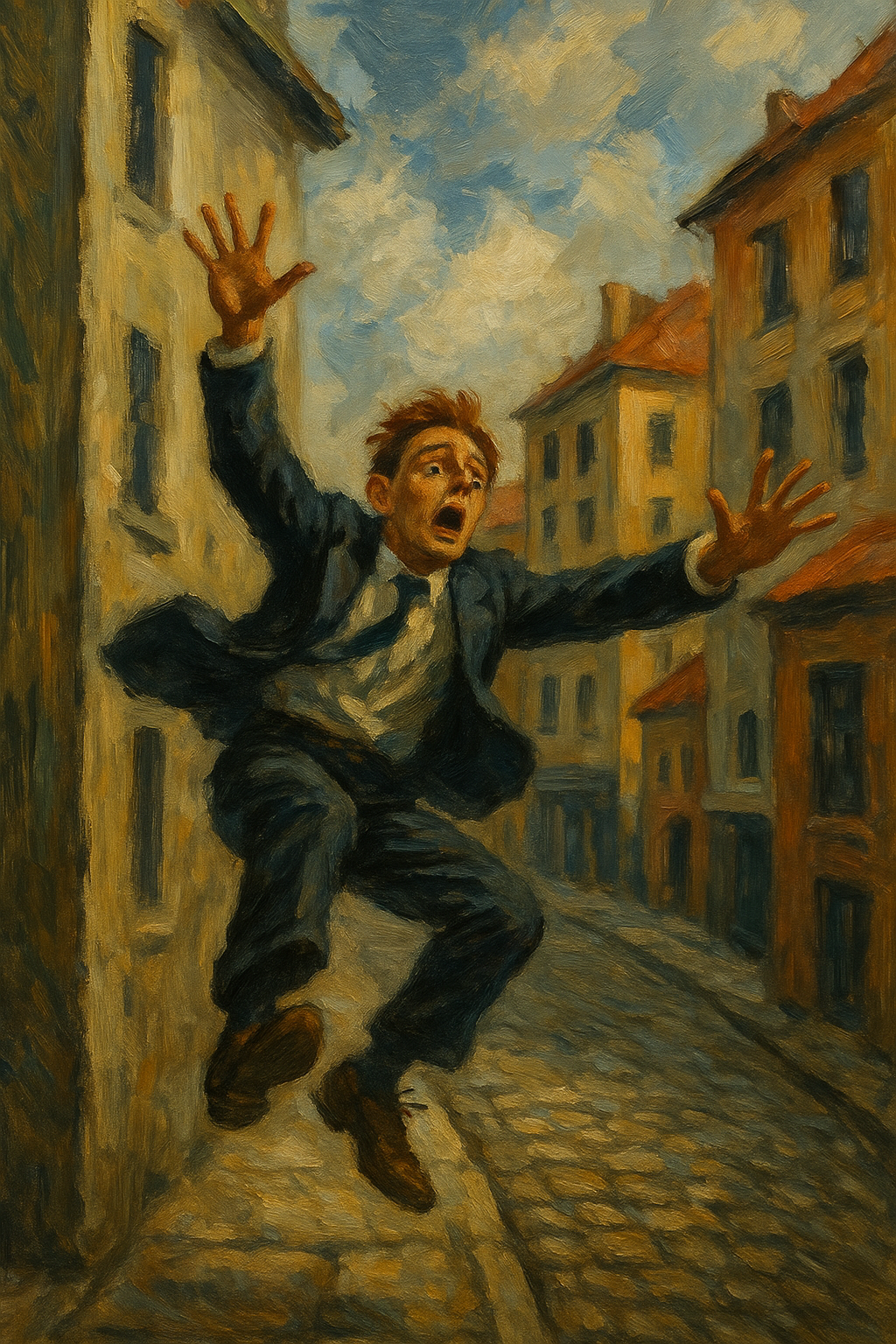 "5층에서 떨어지는 사람이 바닥에 닿기 전에
