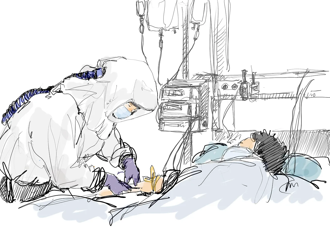 그녀는 올해 초 코로나가 확산될 때부터 이 병원에서 코로나 환자들을 맡아오고 있다고 했다. 자신이 만났던 코로나 확진자들에 대한 이야기를 해 주면서 병실에 입원해서 있는 동안 마음을 편히 먹고, 완치돼서 나갈 수 있으니 걱정하지 말라며 내게 용기를 주었다. 모든 사람들이 옆에 오기를 기피하는 내 등을 쓰다듬어 주고 내 팔을 어루만져주며 괜찮아질 거라고 계속해서 힘을 주었다. 방호 안경 속의 본인 안경에 하얗게 김이 서려 있을 만큼 시간이 한참이나 지나 답답했을 텐데도, 그녀는 내 곁을 떠나지 않고 나의 이야기 친구가 되어주었다.