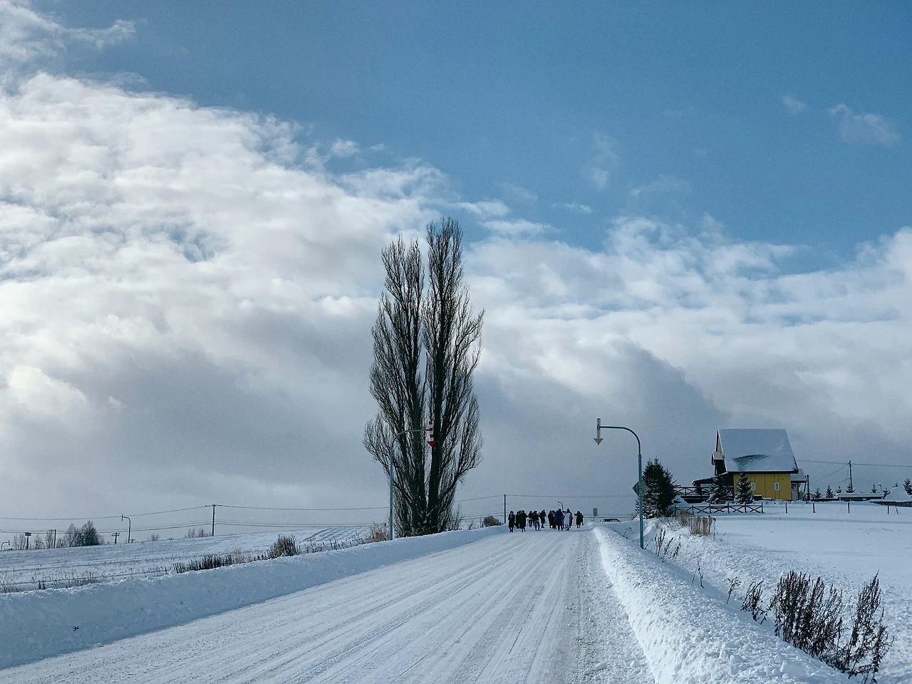 바깥에 나와 몇 걸음 걷자마자 왜 가이드가 늦는다고 한 건지 이해했다. 전날 새벽까지 함박눈이 계속 내렸었는데, 오늘 아침은 눈 없이 아주 청명하다. 이 말은 즉 전날 내린 눈이 모두 얼어 온 길이 스케이트장이라는 뜻이다. 걷기도 힘든데 세상에 운전은 어떻게 하는지! 삿포로에서는 눈이 워낙 많이 내려 그런지 길에 모래도 거의 뿌리지 않는다. 그저 안전운전, 안전 걸음인 것이다. 조심스레 한 발짝 한 발짝 내디뎠다. 생각보다 내 걸음은 느렸고 엉덩방아를 찧을 위기를 열 번은 족히 넘겼다. 조심히 걷다 보니 생각보다 모임 지점까지 오래 걸렸고, 결국 오분 가량 늦고 말았다. 모두들 정말 죄송해요..