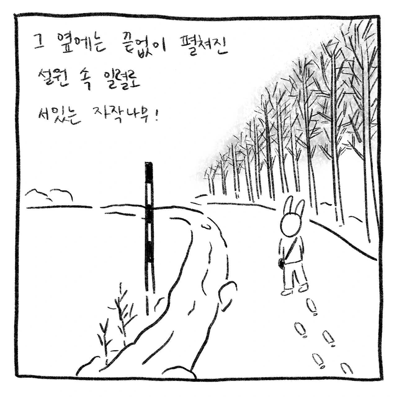 꽤 오랜 시간을 달려 첫 코스인 마일드 세븐 언덕에 도착했다. 이 언덕은 마일드 세븐 담배 광고에 나오면서 유명해졌다고 한다. 끝없이 펼쳐진 설원에 자작나무가 늘어서 있었다. 아, 비에이에 올 때 선글라스를 챙겨 오는 것이 이제 이해가 되었다. 어디를 보아도 온통 흰색이라 눈이 부셔 눈을 질끈 감았다. 내 생에 이렇게 많은 눈을 본 적이 있을까? 아직 많은 나이를 살진 않았지만, 내가 살면서 보지 못했던 것을 본다는 건 너무 즐거운 일이다. 문득 눈밭으로 달려 나가 뒹굴고 싶은 충동이 들었다. 아마 나만 이런 생각을 하는 건 아닐 거야. 애써 이 야성적인 욕망을 집어넣고 눈밭 위에 내 발자국만 열심히 남겼다. 몇 분 뒤면 사라질, 내가 있었다는 흔적을.