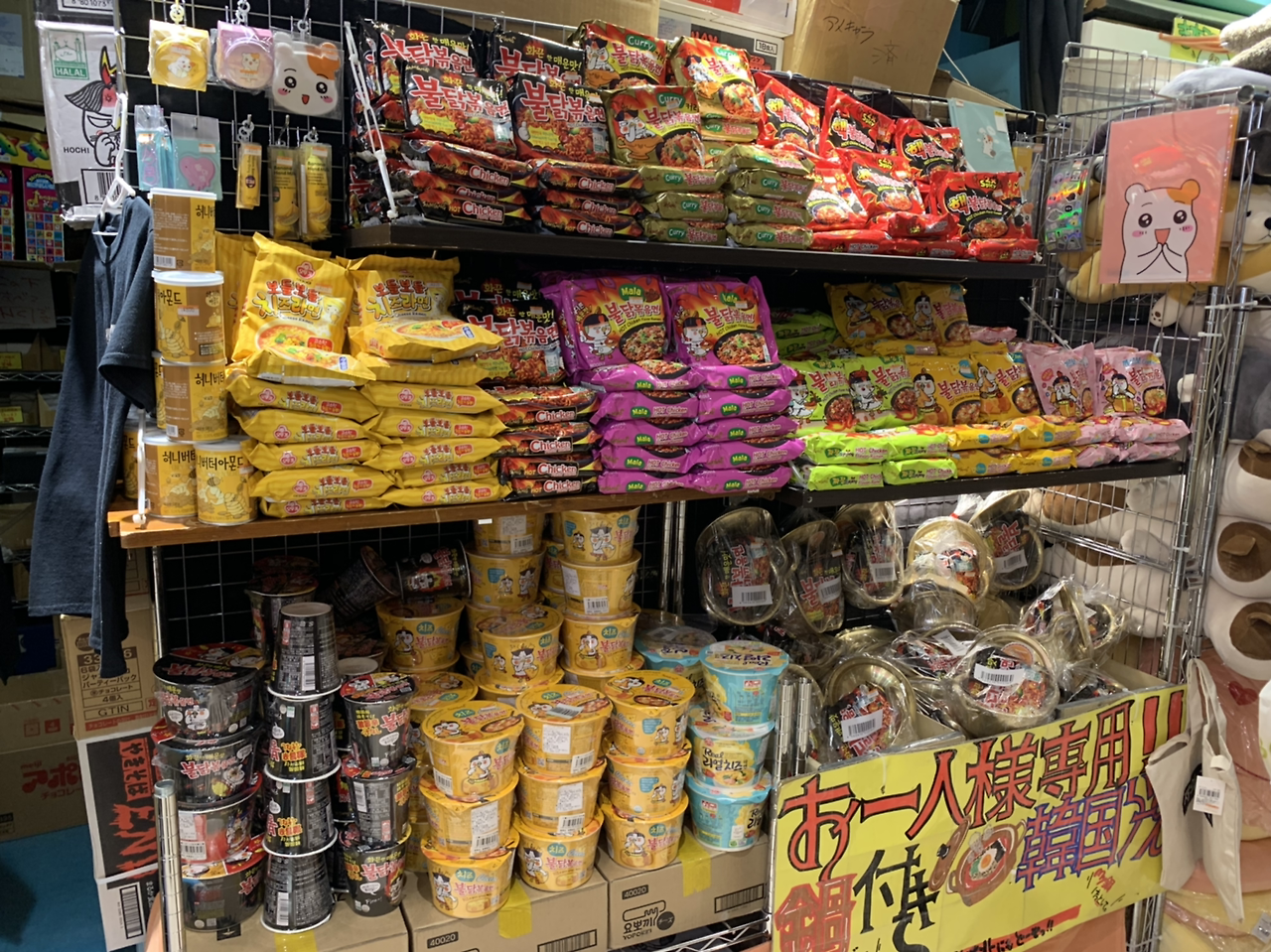한국에서는 한정판으로 판매했던 마라 불닭볶음면이 여기에는 이렇게 쌓여있단 말이야? 왠지 모를 억울함이 밀려왔다. 일본까지 와서 불닭볶음면을 사가기도 좀 그렇고... 저도 이거 먹고 싶단 말이에요..