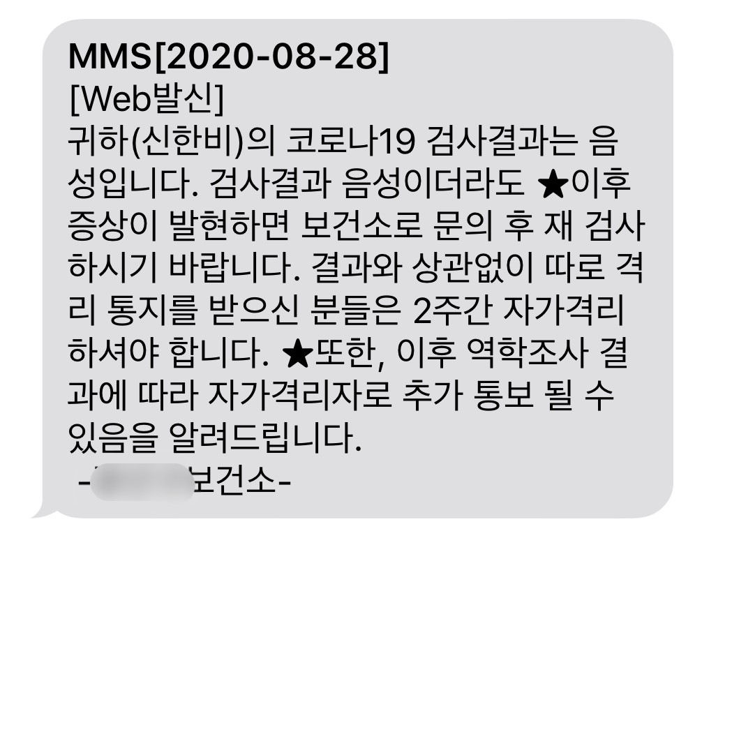 그렇게 자는 둥 마는 둥 하다가, 아침 9시가 되자마자 보건소에 가서 검사를 받았다.