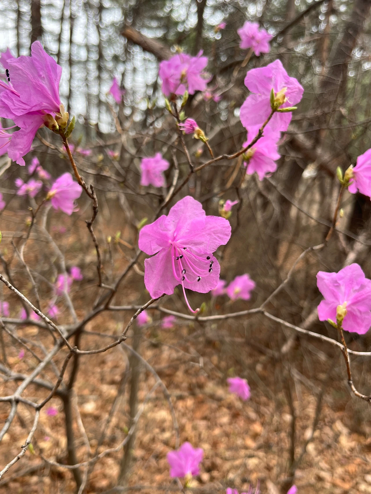 마당의 매화꽃이 하나둘 만개하던 아침, 이따금 오르던 집 앞 숲으로 향했다. 아버지가 사슴을 기르는 곳이라 발길 닿는 대로 들르곤 하는 장소다. 겨우내 붙어 있던 잎사귀들을 다 털어낸 낙엽들은 어느새 땅의 양분이 되어 삭아 있었다. 그 틈에서 초록빛 아기 새싹들과 나뭇가지 끝에 고개를 내미는 작은 잎들이 저마다 겨울이란 고비를 잘 넘겨냈음을 증명하고 있었다. 익숙한 냄새가 났다. 폐부 깊숙이 냄새를 끌어 모아 들이켰다. 비 오기 전 도시의 아스팔트가 젖은 냄새가 아니라, 울창한 숲이 머금은 습한 흙과 나무껍질의 냄새였다. 그 진한 향기를 따라 겨울의 색이 채 가시지 않은 길을 밟았다. 그 순간, 눈앞에 분홍빛 별들이 떠올랐다. 진달래 군락이었다. 이제 막 개화를 시작했는지 오므린 꽃봉오리들이 가득했다. 흥분을 가라앉히고 살금살금 진달래에게 다가갔다. 나무들은 158cm의 키와 엇비슷하게 자라 있었다. 나란히 서서 살포시 꽃등을 들어 올려 보았다. 수술까지 진한 핑크빛인 꽃은 청초한 여인의 긴 속눈썹처럼 허공을 응시했다. 그 눈맞춤에 숨이 멎을 듯했다. 마치 콜럼버스가 신대륙을 발견한 것처럼, 세상에 없던 존재를 마주한 기분이었다. 진달래는 사라진 게 아니었다. 키로 짐작하건대 그것은 분명 오랜 세월 자라온 나무였다. 가느다란 가지들이 여러 갈래로 뻗어 사방을 향해 손짓하고 있었다. 그동안 도시에 살며 자주 공원을 찾았고, 계절이 오는 냄새를 맡으며 날씨를 곧잘 맞춘다 자부해 왔다. 늘 시장 근처에 살며 제철 식재료에도 밝다고 믿었다. 그런 예민한 감각이 몸에 새겨진 본성이라 여겼다. 하지만 사실 계절에 대해 아는 것이 아무것도 없었다. 매화가 필 때쯤 진달래도 피어난다는 것, 씨앗은 멀리 날아가지 않고 제 주변을 맴돈다는 것, 그리고 사람의 손이 닿지 않는 촉촉한 산비탈에서 훨씬 잘 자란다는 것. 야생의 군락을 이제야 발견한 이유는 여전히 내가 이곳을 잘 모르는 이방인임을 확인시켰다.