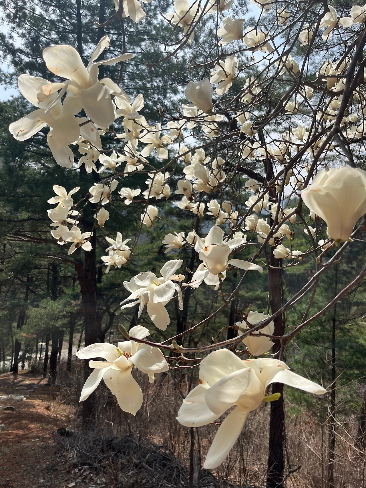 시내에 벚꽃 축제가 한창일 때, 나의 온실에서는 월동추가 꽃대를 올렸다. 비가 내리고 해가 나는 변덕스러운 날씨가 이어졌다. 벚꽃이 흐드러지면 꼭 비가 내려 꽃의 고개를 떨구는 것은 산의 법도였다. '꽃이 피면 곧 비가 온다'는 것은 산골의 봄을 지켜보며 터득한 질서였다. 마음이 조급해졌다. 특히 봄 초입의 꽃에게는 허락된 시간이 많지 않다는 것을 알고있었다. 반짝 해가 난 일요일, 강아지 겨울이와 함께 목련나무를 향해 길을 나섰다. 가파른 내리막을 지나 송악정 오두막과 돌 거북이 입에서 나오는 약수로 목을 축였다. 저 멀리 산불보호 초소에서 우리를 먼저 반기는 이는 아버지가 '조카며느리'라 부르는 마을 할머니셨다. 겨울이를 보며 환하게 마중을 나오신 할머니의 얼굴에 이내 수심이 드리웠다.