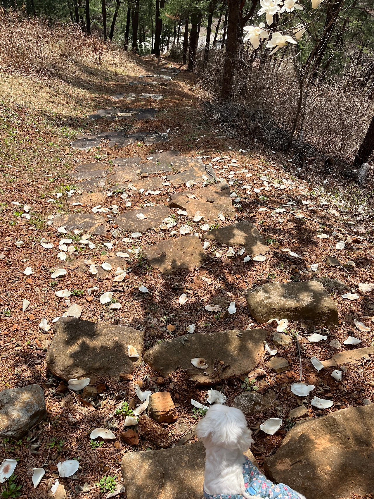 나무 아래로 툭, 떨어진 목련 꽃잎을 본다. 겨울이는 제 몸 비슷한 색깔의 떨어진 그 하얀 잎을 보며 고개를 갸우뚱한다. 한바구니 그 순백들을 담고, 가장 하얗고 예쁜 목련을 초소를 지키던 할머니께 놓아드렸다.