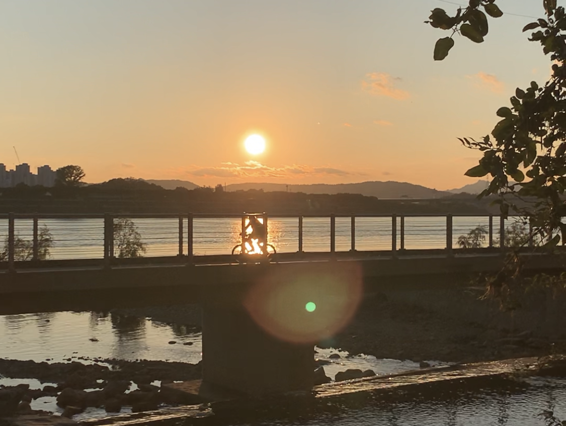 몇십 번은 본 장면들인데, 분명 지겨워야 하는데, 진한 주홍색 노을빛을 받아 반짝이는 강물과 사람들이 너무 아름답다는 생각과 함께 잠시 잃어버렸던 내 감각들이 선명하게 차오른다.