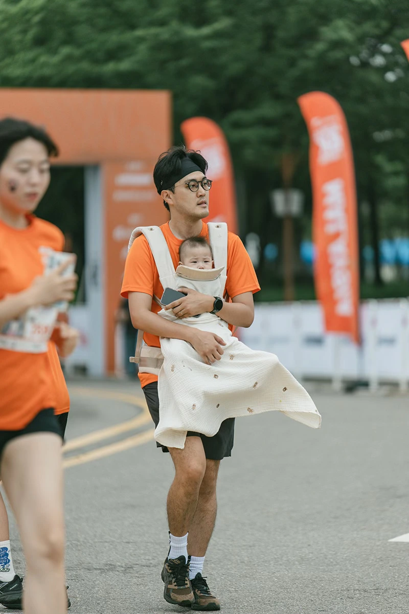 걷다가 잠시 안아주는 엄마,
