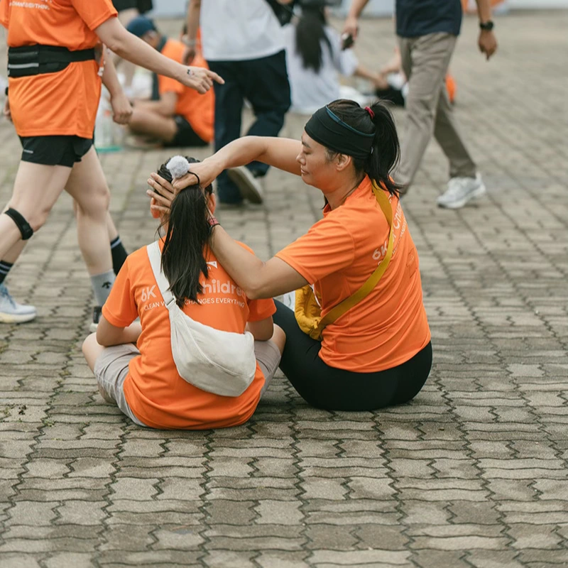 물 한 모금 나누고 다시 걸음을 맞추는 아이들.