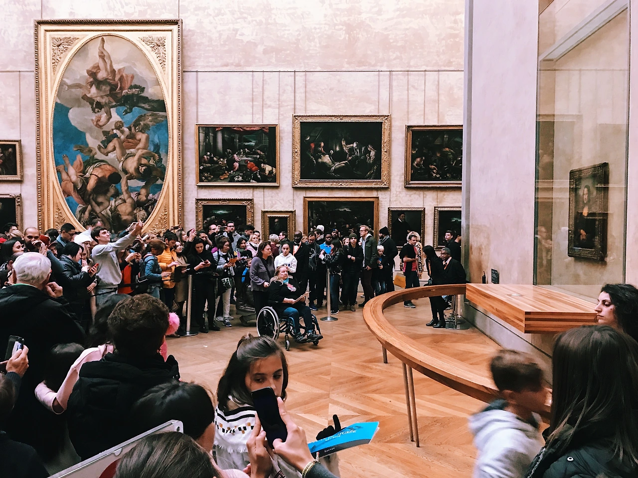작년에 <모나리자>를 볼 기회가 있었는데, 나도 모르게 <모나리자>만큼이나 ‘<모나리자>를 보는 사람들’을 보게 됐다. 사실 <모나리자>를 보려면 한참 인파 속에서 기다려야 하기 때문에 보려고 보지 않아도 보게 된다. 사람들은 차례차례 기다려 줌을 당겨 사진을 찍거나 모나리자와 내가 같이 나오는 인증샷을 찍고 빨리빨리 빠져줘야 했다. 원활한 진행(적당히 보고 빠져주는 분위기)을 위해 시큐들이 지켜보고 있는 분위기까지. 감상은 고사하고 눈으로 보긴 본 거라고 말해도 되는 건지도 잘 모르겠다.