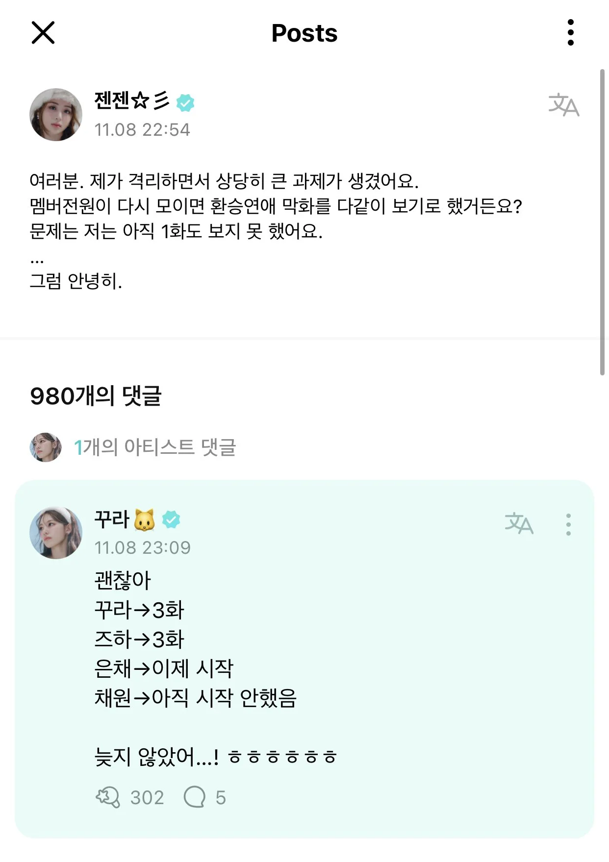 평소 르세라핌 멤버들은 위버스 커뮤니티나 트위터 등 다양한 플랫폼에서 티빙의 인기 연애 프로그램인 ‘환승연애’에 대한 애정을 보였다.