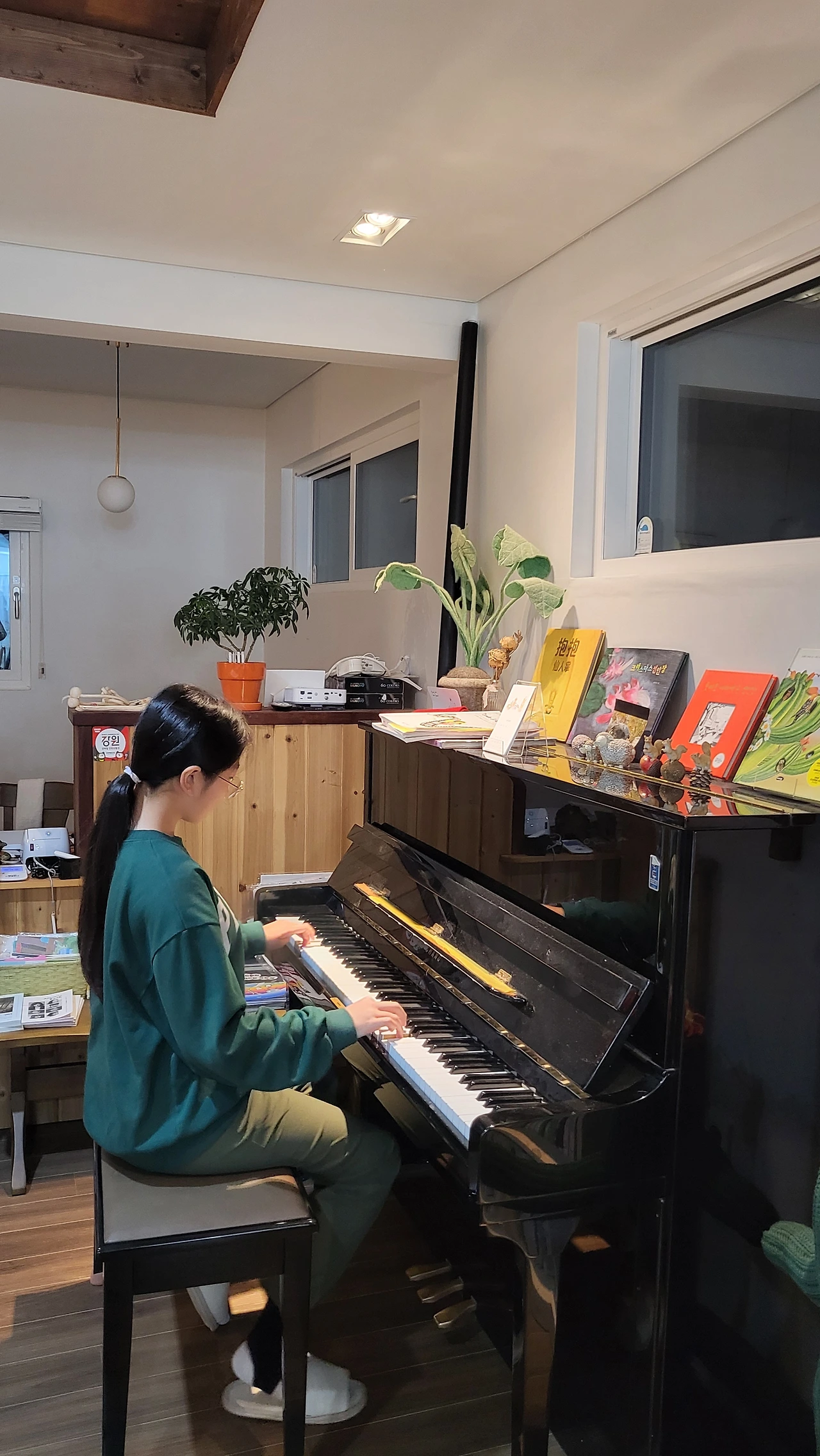 책방 선인장에는 벽난로와 피아노와 쌓아놓고 읽을 수 있는 책들과 아기자기한 벤치 공간이며 눈 내리는 날에 통창으로 바라볼 수 있는 아름다운 설경과 맛있는 조식과.. 말로 다 못할 낭만들이 있다.